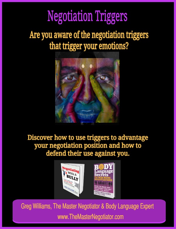 During your #negotiation, be aware of the effects of #EmotionalTriggers. If you don’t control them, the other negotiator will use them to control you. Discover how to use #triggers effectively when you #negotiate.