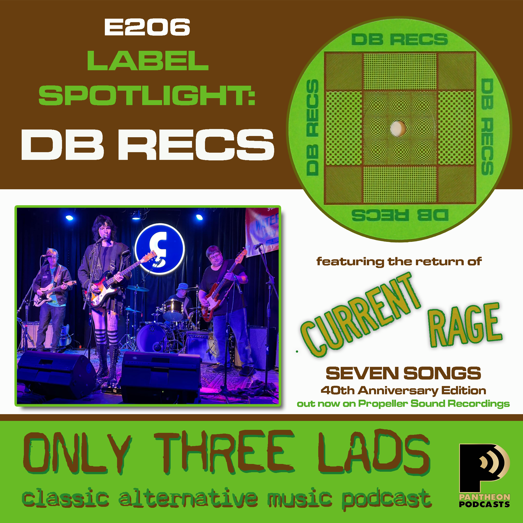 This week, we each offer up our Top 5 DB Recs songs with special guests Current Rage - John Moore (rhythm guitar), Paul Lenz (drums), and Bryan Lilje (bass). In absentia is lead guitarist and vocalist Olivia Bewley. You may remember the remarkable story of Current Rage from Episode 140: The band formed in 1979 by professional skateboarders Chris Bewley (brother of Pylon's Randy) and John Moore. By the beginning of 1981, they were headlining shows in the southeast with their brash, energetic, catchy post-punk tunes. They released the indie EP Seven Songs in 1982, which became a highly coveted collector's item among fans of DIY indie rock. After Current Rage ceased to be, each of the members followed different paths, with Chris Bewley succumbing to a heart attack in 2018 at the age of 57.