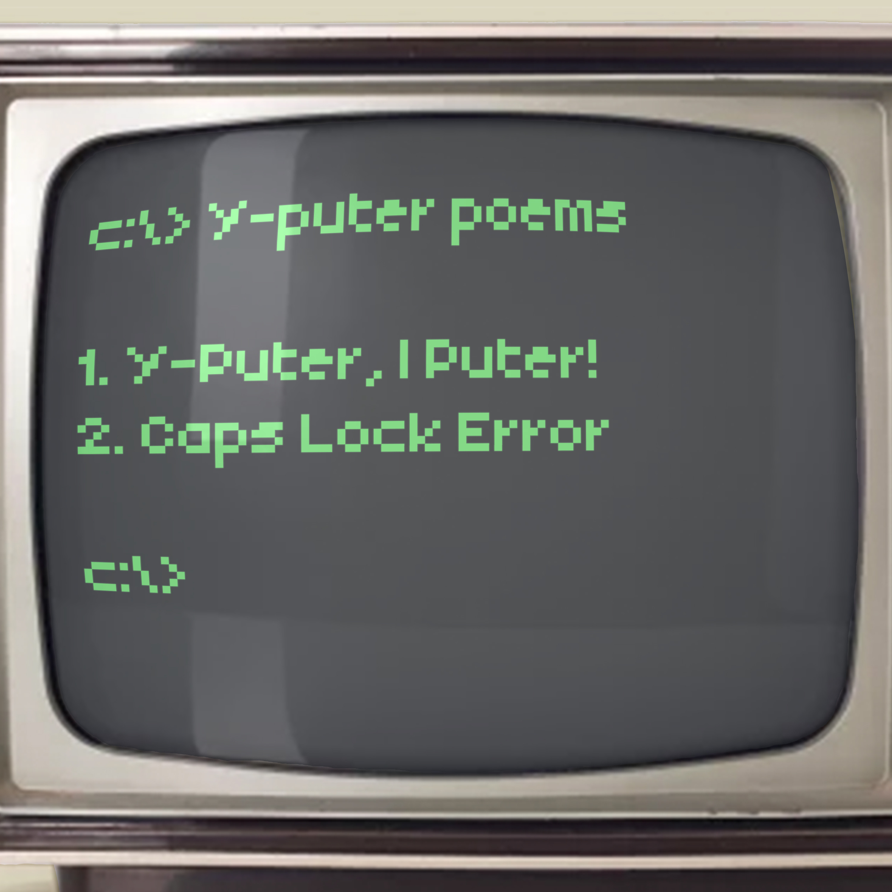 “Caps Lock Error” Shift to yell. Shift to start a sentence that I cannot write. Shift makes the letter tall, bright. And I yell in fonts preselected long ago. Why must I shift so? Shift is the secret to making you stand out in a crowd I wish I was loud, shifting my letter, my ideas, my … dreams? Maybe it was all a joke. You accidently left it so The caps lock was on. How is it a lowercase and capital came to be paired Like mother and child, a dotted I grows tall and serifed. But still the “I” I have feels juvenile undeveloped Shift me soon mommy? How is it fingers can yell ask the caps lock key. Is it revelry? Or just an error unforced like a muffed bunt Sports are sporting only when they cannot hunt some say Who will lock my caps My caps, when I am at last. Asleep. Please send positive feedback to yputerpoems@gmail.com Y-Puter is Billy Griffin, Jr written by Jonathan Goldberg and Matt roi Berger recorded and mixed by Will Melones