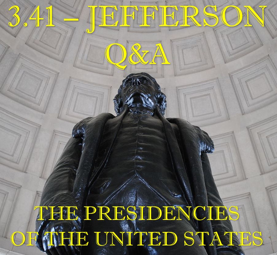 You asked, and I answered! As we wrap up our series on Thomas Jefferson’s presidency, listeners submitted questions ranging from Franco-American relations during Jefferson’s tenure to what pets he kept to how would I go about explaining Jefferson’s complex legacy to him. Listen in as I answer your final questions about the man from Monticello and his impact on American history. Sources used for this episode can be found at http://presidencies.blubrry.com.