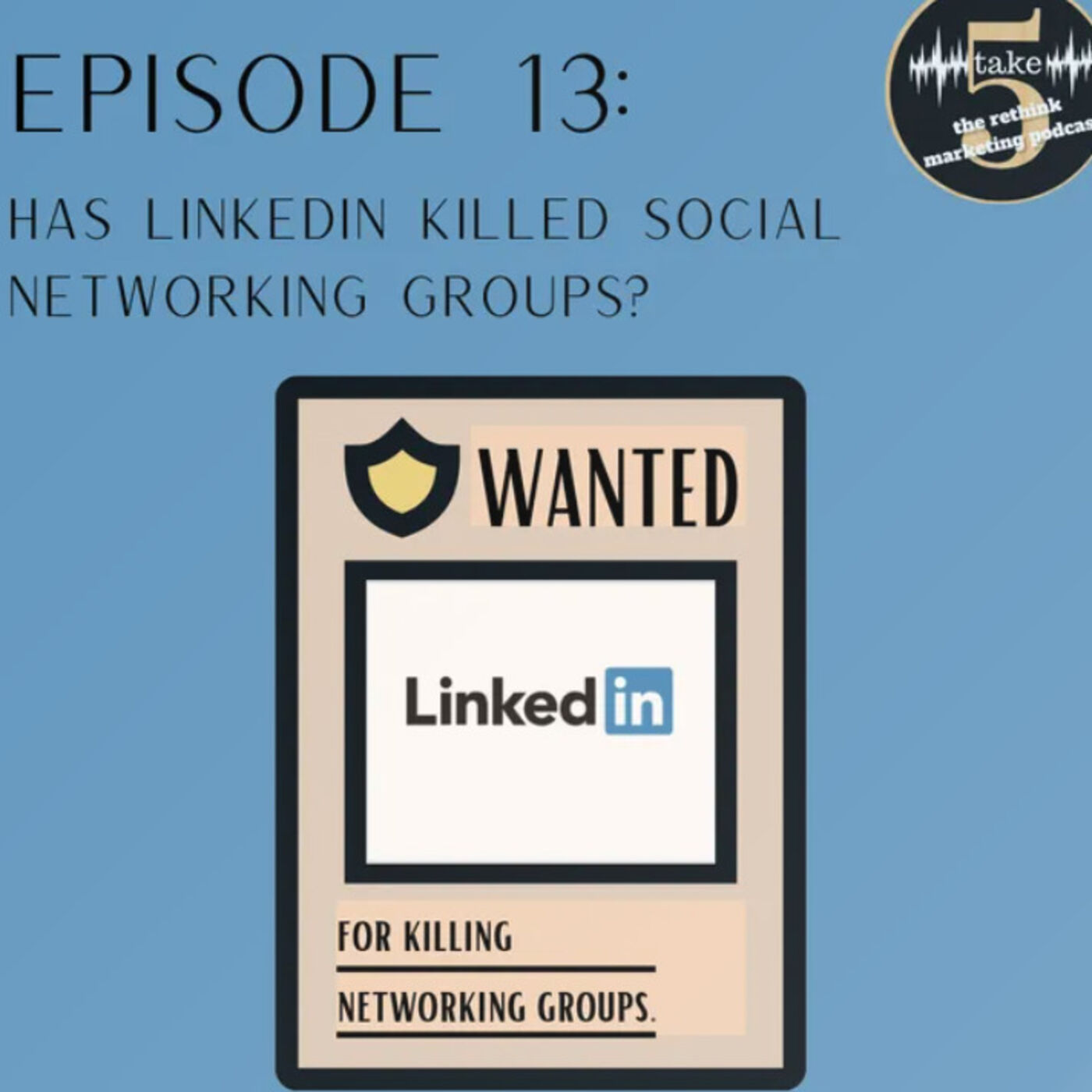 On Episode 13 of take5: The Rethink Marketing podcast we question the idea of digital platforms like LinkedIn killing the need to get involved in traditional networking groups. Are you really missing anything if you bail on the traditional model? Take a listen... We would love to hear your thoughts, questions or feedback. To contact us please email us at take5@reed5group.com