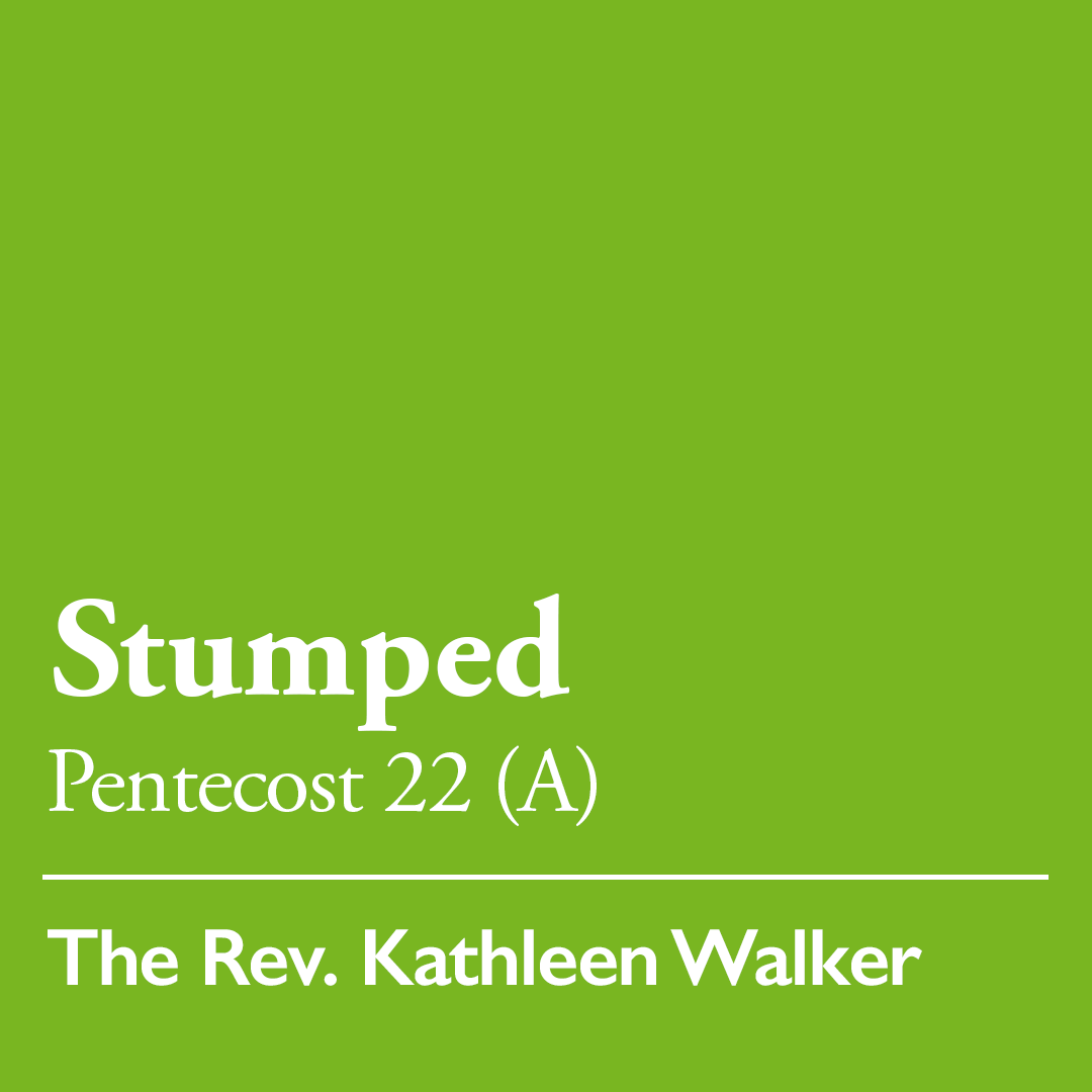 Today's sermon is for Pentecost 22 (A) and is titled Stumped. It was written by the Rev. Kathleen Walker and read by the Rev. Danae Ashley.