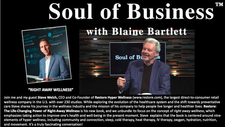 Join me and my guest Steve Welch, CEO and Co-Founder of Restore Hyper Wellness (www.restore.com), the largest direct-to-consumer retail wellness company in the U.S. with over 230 studios. While exploring the evolution of the healthcare system and the shift towards preventative care Steve shares his journey in the wellness industry and the mission of his company to help people live longer and healthier lives. Restore: The Life-Changing Power of Right-Away Wellness is his new book, and we unbundle its focus on the concept of right away wellness, which emphasizes taking action to improve one's health and well-being in the present moment. Steve explains that the book is centered around nine elements of hyper wellness, including community and connection, sleep, cold therapy, heat therapy, IV therapy, oxygen, hydration, nutrition, and movement. It’s a truly fascinating conversation!