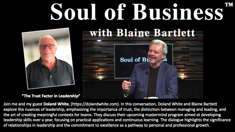 Join me and my guest Doland White, (https://dolandwhite.com). In this conversation, Doland White and Blaine Bartlett explore the nuances of leadership, emphasizing the importance of trust, the distinction between managing and leading, and the art of creating meaningful contexts for teams. They discuss their upcoming mastermind program aimed at developing leadership skills over a year, focusing on practical applications and continuous learning. The dialogue highlights the significance of relationships in leadership and the commitment to excellence as a pathway to personal and professional growth.