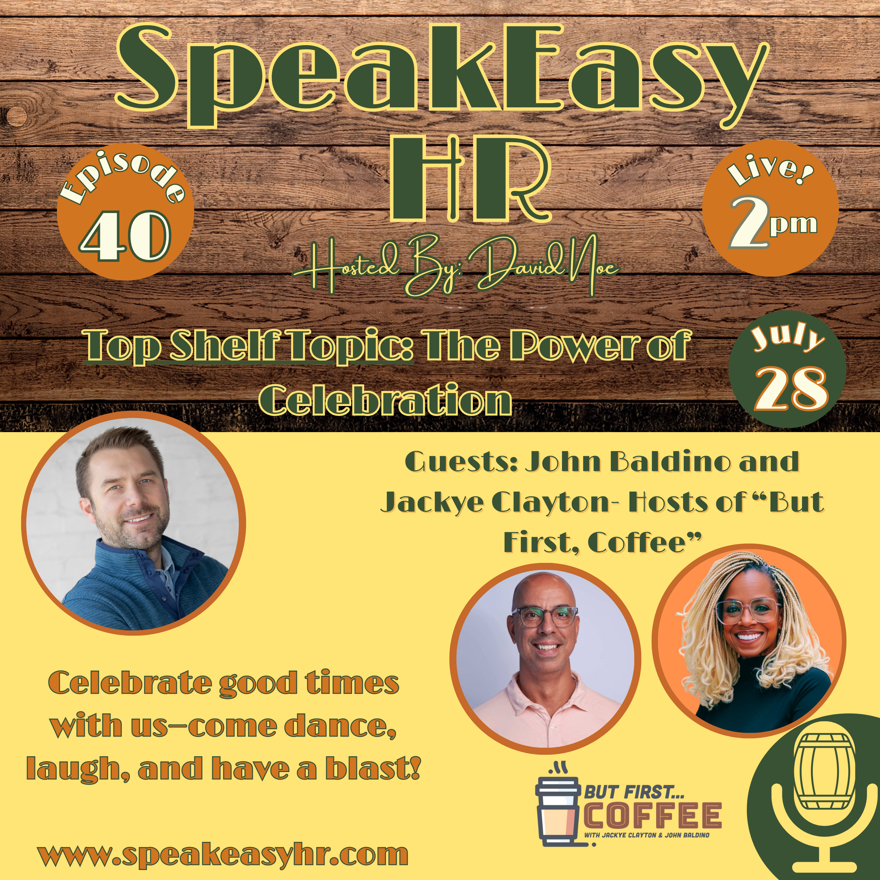 In this energizing episode of SpeakEasy HR, we’re joined by the dynamic team behind "But, First Coffee"—John and Jackye—for a feel-good, real-talk conversation about something every workplace needs more of: celebration.
