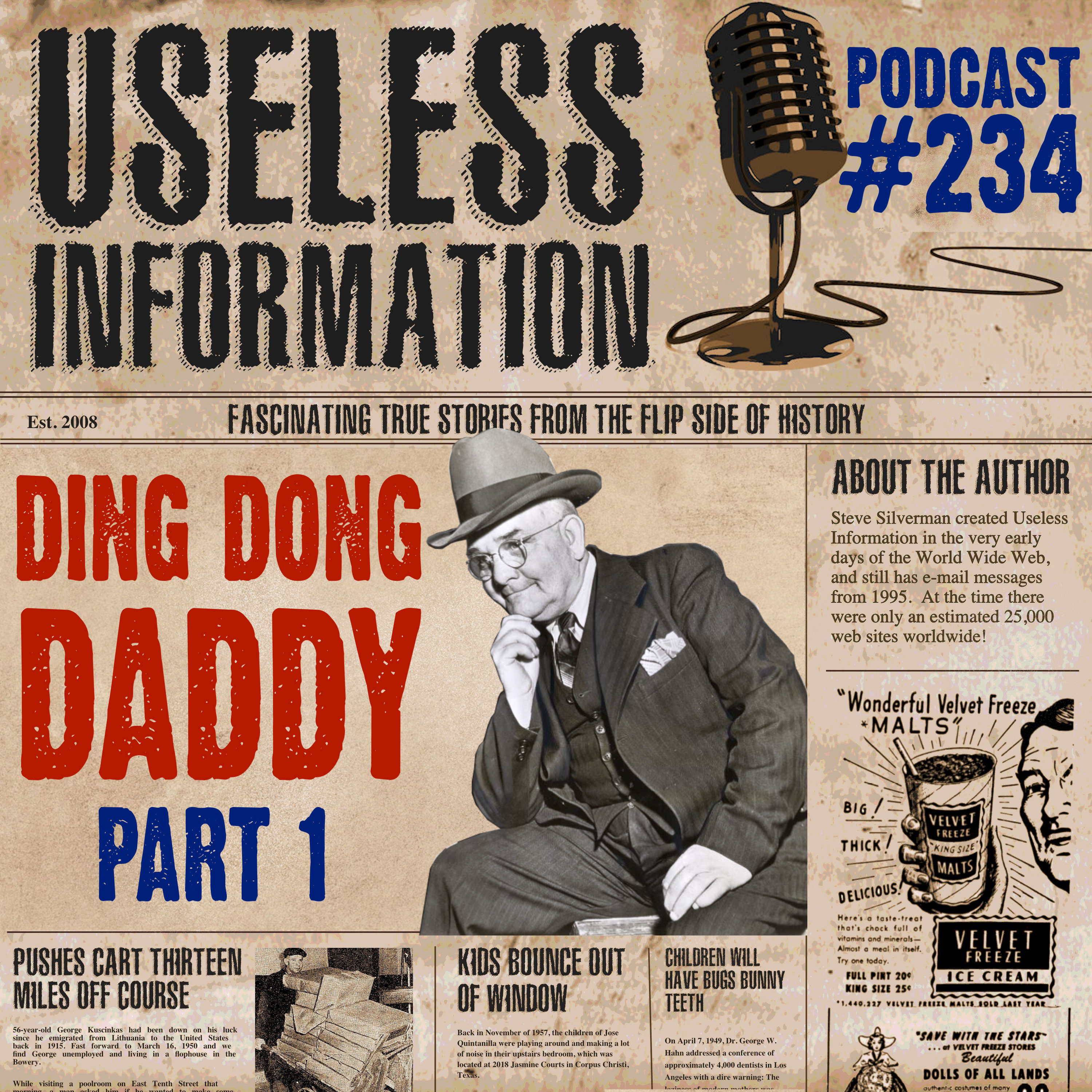 Images, links, and transcripts for this podcast can be found at https://uselessinformation.org/ding-dong-daddy-part-1-podcast-234/