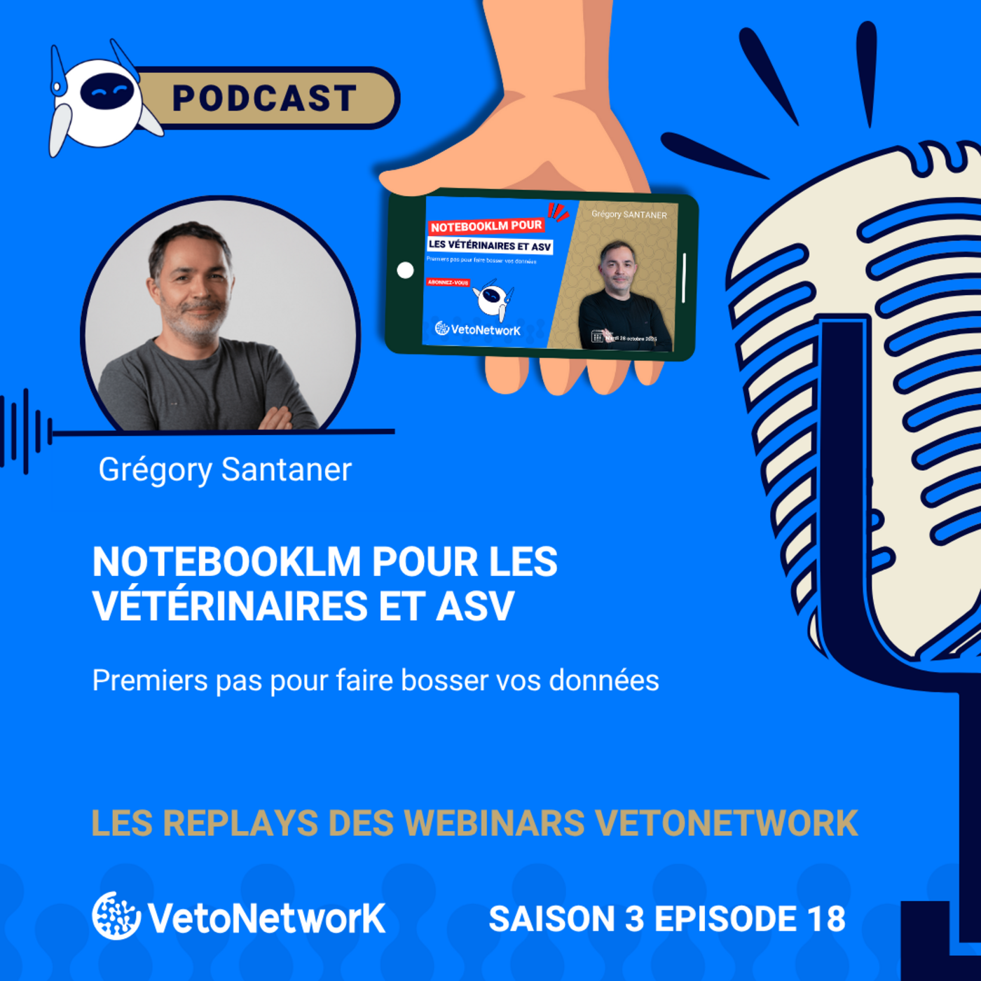 Épisode de podcast reprenant le webinar du mardi 28 octobre 2025 intitulé "🤖 NotebookLM pour les vétérinaires et ASV : 1ers pas pour faire bosser vos données". Le replay vidéo est disponible ici sur la chaîne YouTube VetoNetwork.
