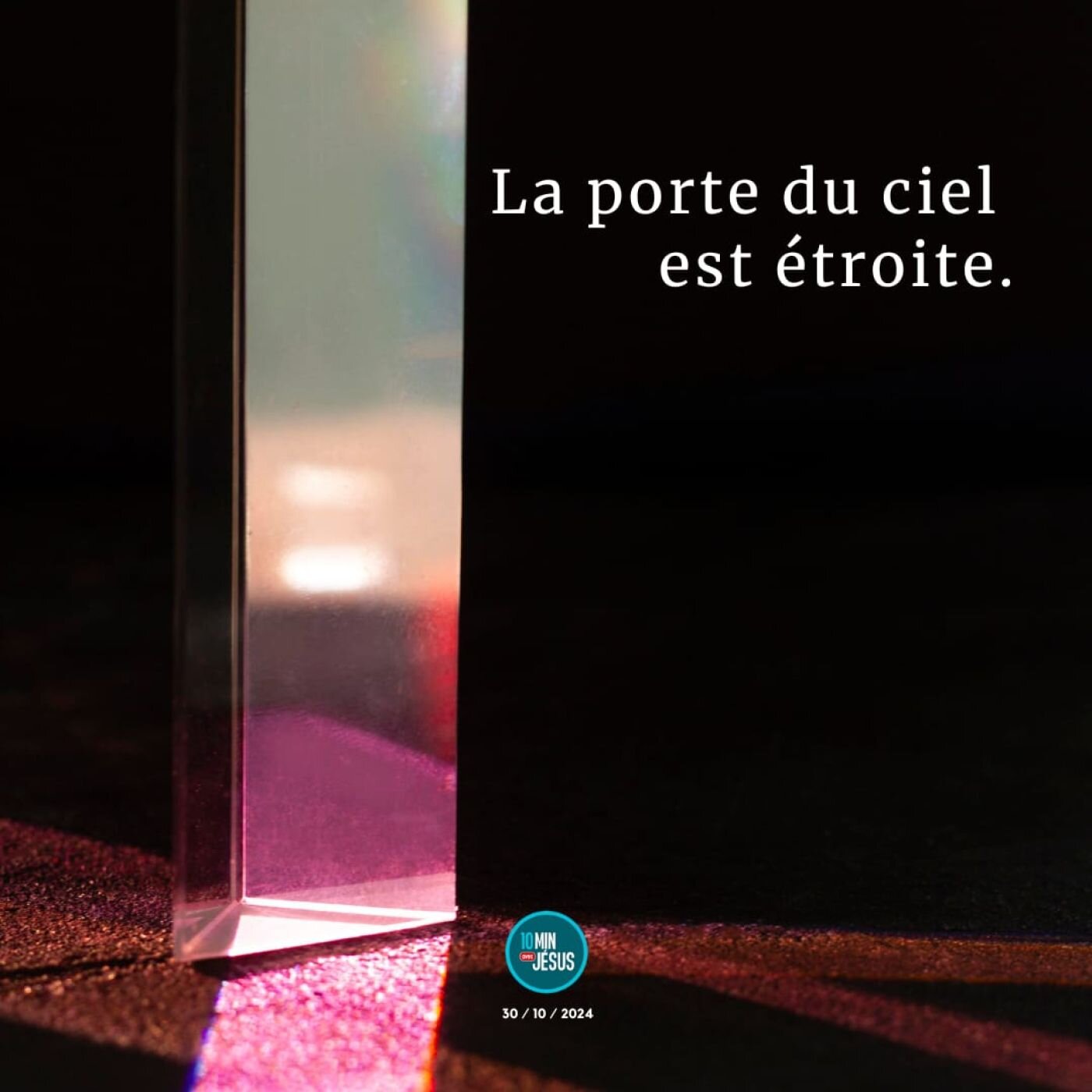 🙏 Mets-toi en présence de Dieu, pour essayer de Lui parler. Tu disposes de 10 minutes, pas plus : va jusqu’au bout, même si tu te distrais. Persévère. Prends ton temps et laisse l’Esprit Saint agir 'à petit feu'. Choisis le meilleur moment, imagine que tu es avec Lui, et appuie sur play pour commencer. 📲 Toutes les infos sur notre site : www.10minutesavecjesus.org Contact : 10minavecjesus@gmail.com En ce temps-là, tandis qu’il faisait route vers Jérusalem,Jésus traversait villes et villages en enseignant. Quelqu’un lui demanda :« Seigneur, n’y a-t-il que peu de gens qui soient sauvés ? »Jésus leur dit : « Efforcez-vous d’entrer par la porte étroite,car, je vous le déclare,beaucoup chercheront à entreret n’y parviendront pas. Lorsque le maître de maison se sera levépour fermer la porte,si vous, du dehors, vous vous mettez à frapper à la porte,en disant :“Seigneur, ouvre-nous”,il vous répondra :“Je ne sais pas d’où vous êtes.” Alors vous vous mettrez à dire :“Nous avons mangé et bu en ta présence,et tu as enseigné sur nos places.” Il vous répondra :“Je ne sais pas d’où vous êtes.Éloignez-vous de moi,vous tous qui commettez l’injustice.” Là, il y aura des pleurs et des grincements de dents,quand vous verrez Abraham, Isaac et Jacob, et tous les prophètesdans le royaume de Dieu,et que vous-mêmes, vous serez jetés dehors. Alors on viendra de l’orient et de l’occident,du nord et du midi,prendre place au festin dans le royaume de Dieu. Oui, il y a des derniers qui seront premiers,et des premiers qui seront derniers. » YLB
