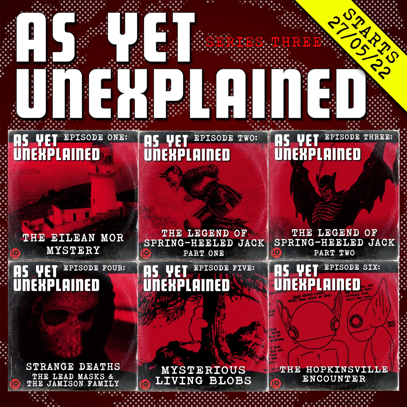 This series we will be looking at The legend of Spring-heeled Jack, the alien encounters at Hopkinsville, the unexplained deaths of the Jamison family and the lead masks incident, the missing crew of the Eileen Mor lighthouse and the sightings of mysterious living blobs that inspired the film, The Blob.