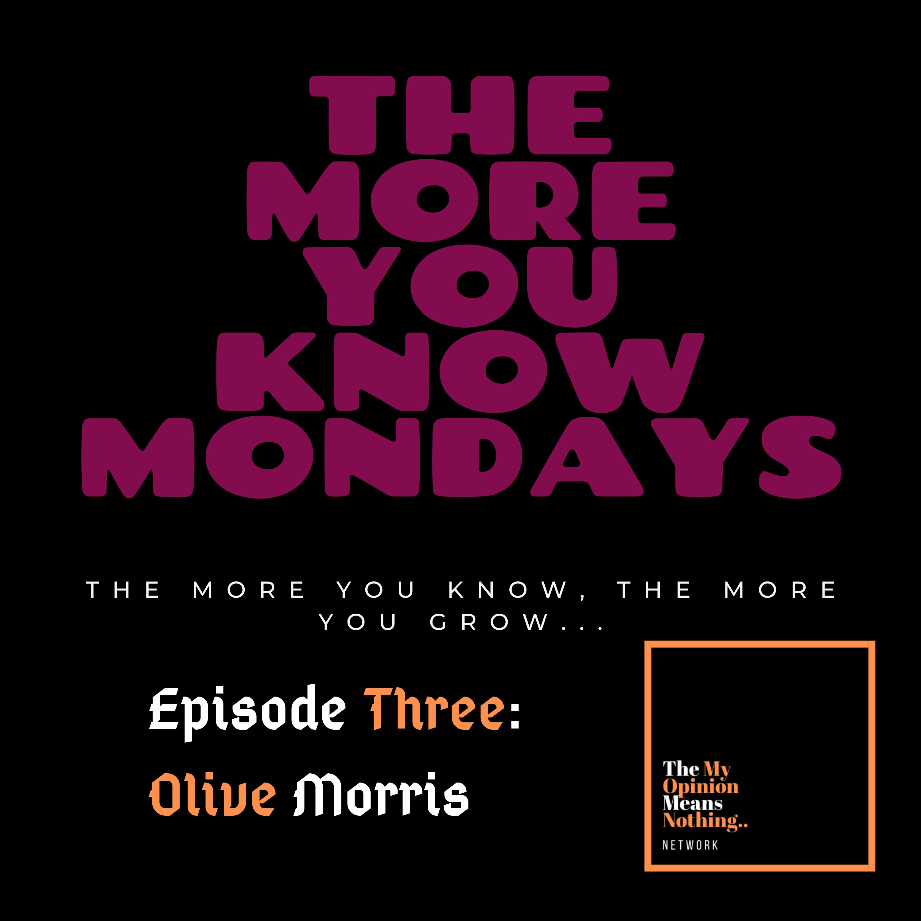 This is the third episode of The More You Know Mondays Podcast, in this episode Kory talks about the life and achievements of Olive Morris, exploring the fruitful life she had in her short life.