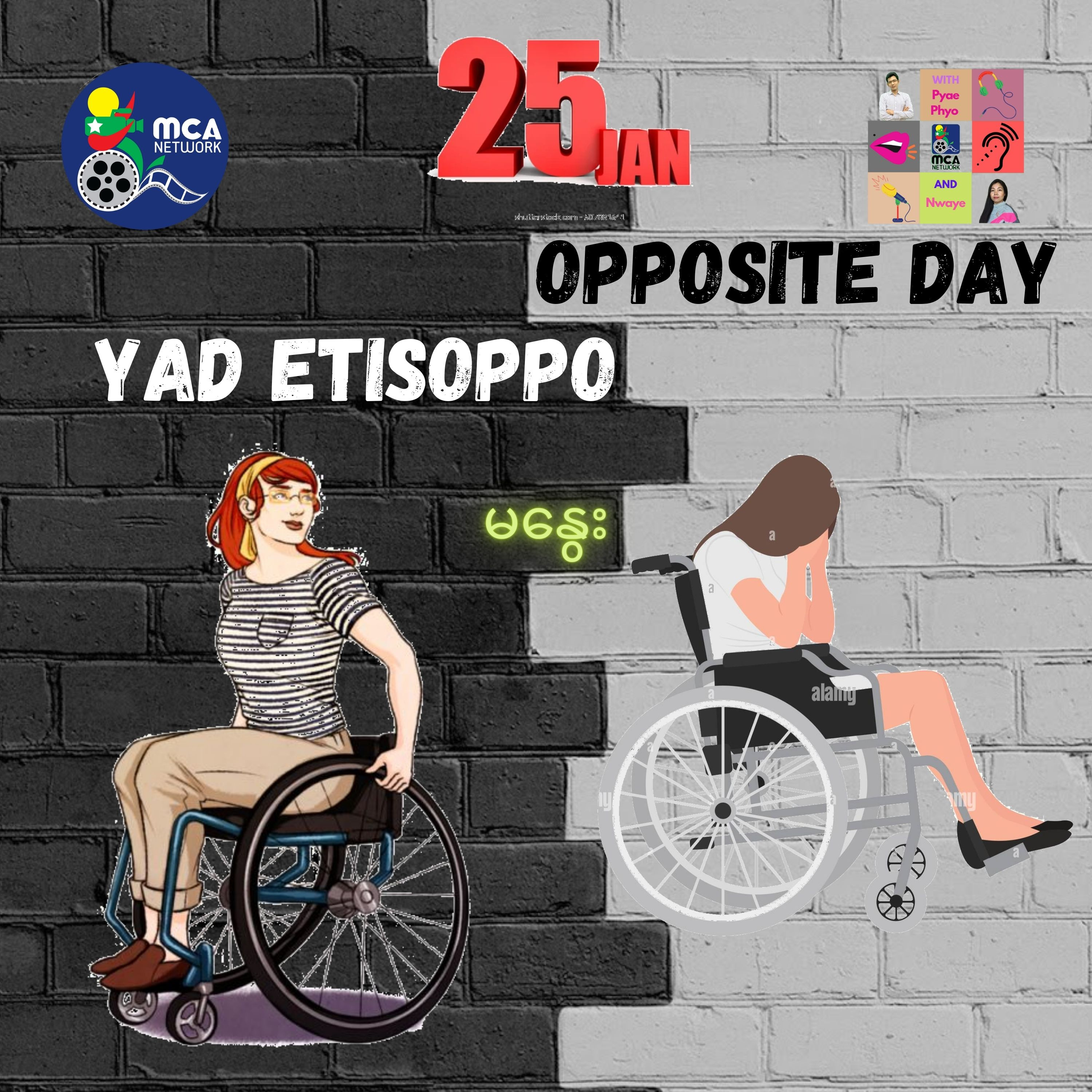ဒီအပတ် ရယ်ရယ်မောမော ပေါ့ပေါ့ပါးပါးရဲ့ တက်သစ်စလူငယ် အစီအစဉ်မှာတော့ ပင်တိုင်တင်ဆက်သူ မနွေးက Opposite Day အကြောင်းကို မသန်စွမ်းမှုအပေါ် ရှုမြင်ပုံနဲ့နှိုင်းယှဉ်ပြီး မိမိတို့ရဲ့ အတွေးအမြင်တွေ အပြုသဘောဆောင်တဲ့ အကောင်းဘက်ဆီကို ဘယ်လို ဆန့်ကျင်ဘက်နေ့အဖြစ် ပြောင်းလဲသွားမလဲဆိုတာ မိတ်ဆွေတို့ကိုယ်တိုင် လက်တွေ့လုပ်ပြီး မြည်းစမ်းကြည့်ဖို့ ပျော်ရွှင်စရာ ဗဟုသုတရဖွယ် ဝေမျှပေးထားပါတယ်။