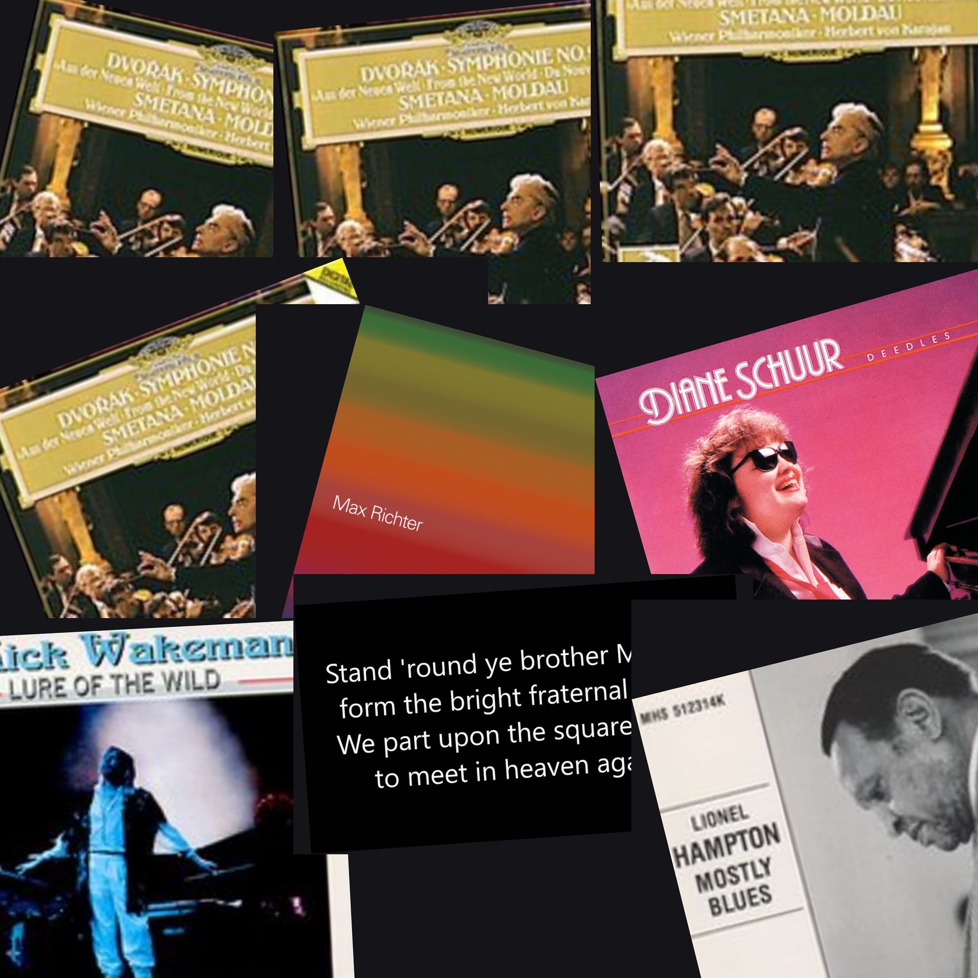 Liste des morceaux : Max Richter\\Elena Urioste\\Chineke! Orchestra - Richter - Autumn 3, Herbert von Karajan / Wiener Philharmoniker - New World Symphony / Allegro con fuoco, Rick Wakeman - Past and Present (feat. Adam Wakeman), John Coltrane - Spiritual, Diane Schuur - I'm Beginning To See The Light, Robert Morris - The Level and the Square, Herbert von Karajan / Wiener Philharmoniker - New World Symphony / Largo, Herbert von Karajan / Wiener Philharmoniker - New World Symphony / Adagio-Allegro molto, Herbert von Karajan / Wiener Philharmoniker - New World Symphony / Molto vivace, Dizzy Gillespie & Phil Woods Quintet - Round Midnight, Lionel Hampton - Walkin' Uptown (feat. Bobby Scott, Joe Beck, Grady Tate & Bob Cranshaw), Jazzymuté - 1F50 Boris Vian, Swing Saint Germain - Ah si j'avais trois francs cinquante a