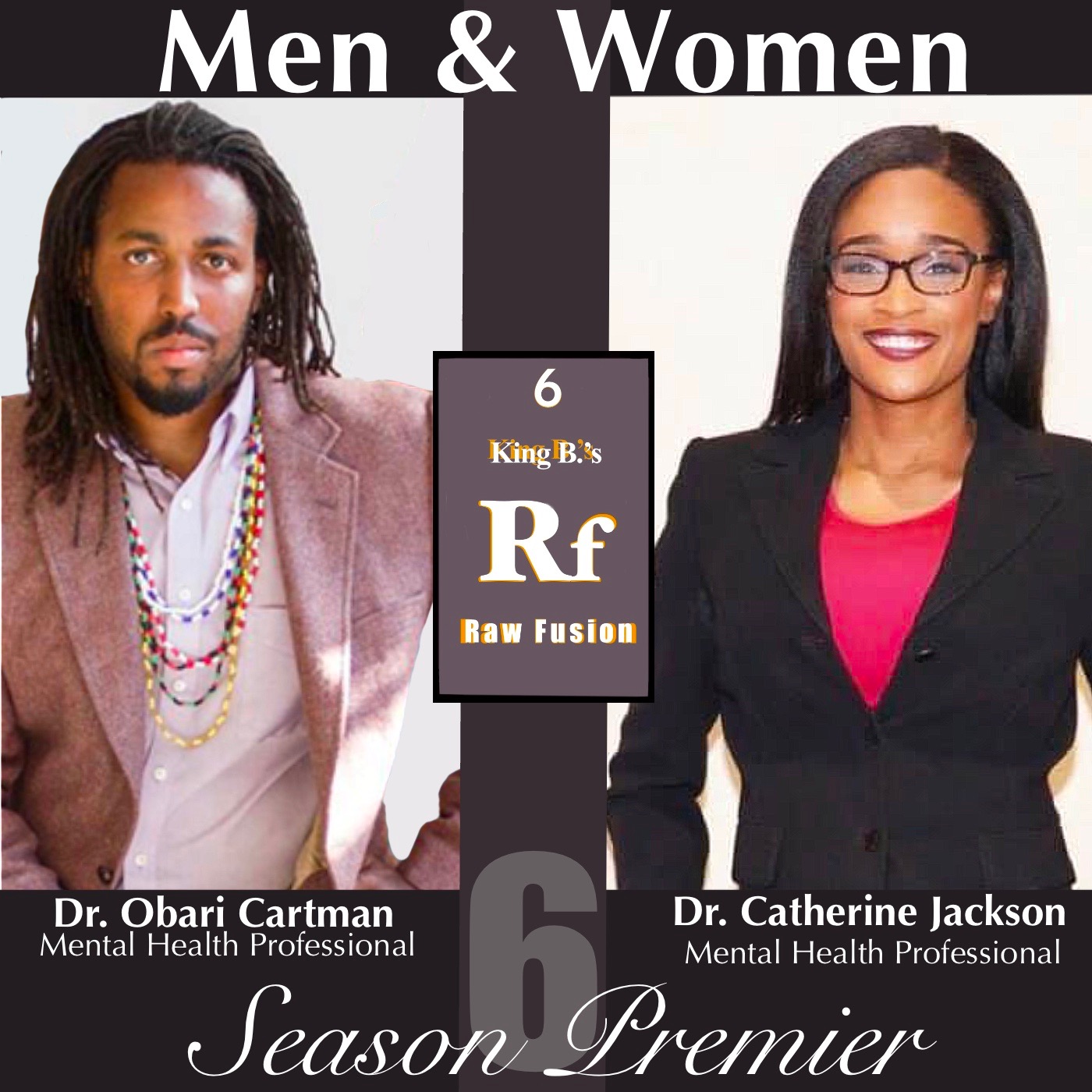 Season 6 Premiere! Mental health professionals, Dr Obari Cartman and Dr. Catherine Jackson discuss the problems between Male/Female relationships and the steps toward healing and reconciliation on Raw Fusion Live in Club Raw Fusion on Clubhouse.