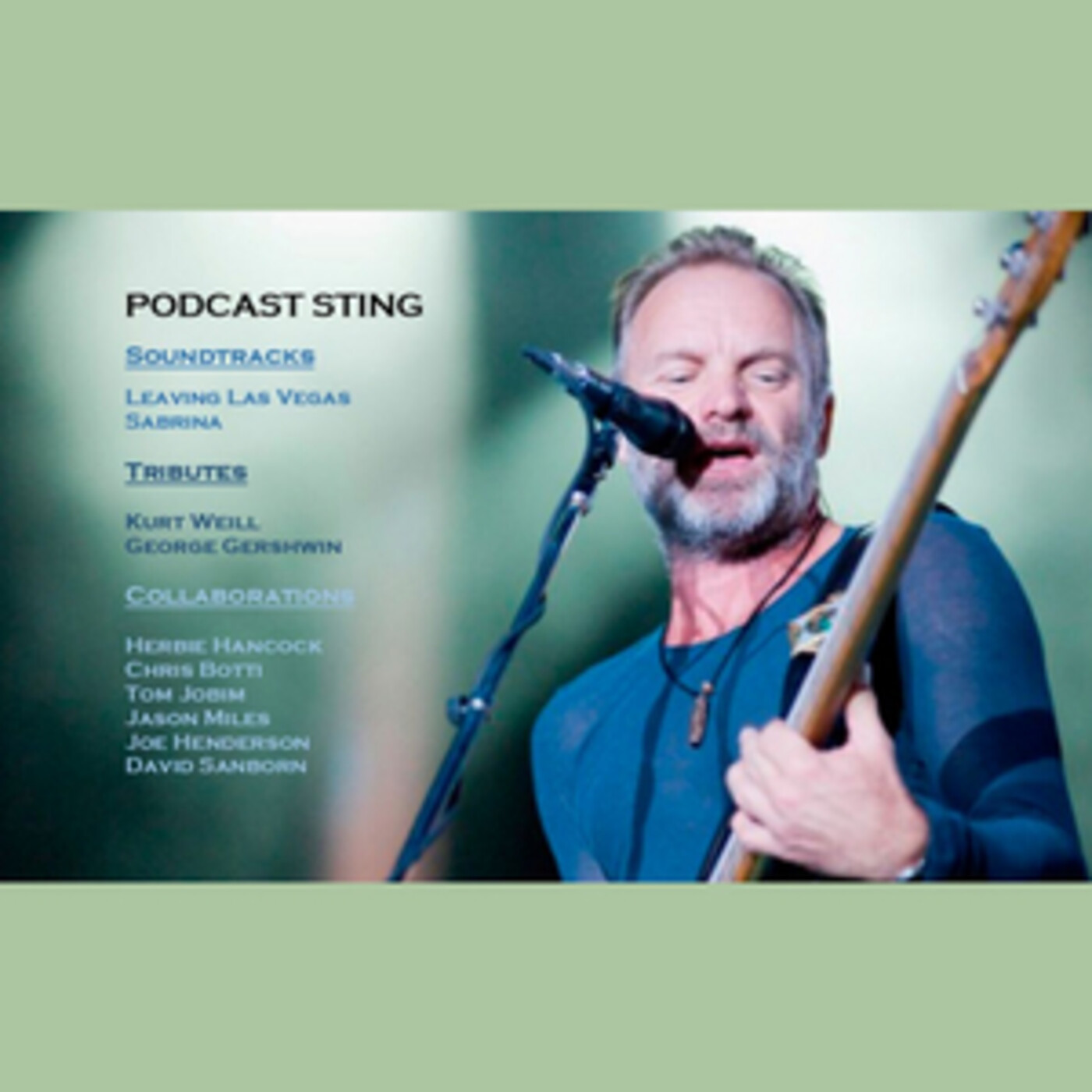 Programa especial dedicado a Sting, en el que repasamos sus apariciones fuera de su discografía. Por ejemplo, sus temas en las bandas sonoras de las películas Leaving Las Vegas y Sabrina, sus colaboraciones en álbumes de Herbie Hancock, Chris Botti, Tom Jobim, Jason Miles, Joe Henderson y David Sanborn, así como sus aportaciones a discos homenaje a Kurt Weill y George Gershwin.