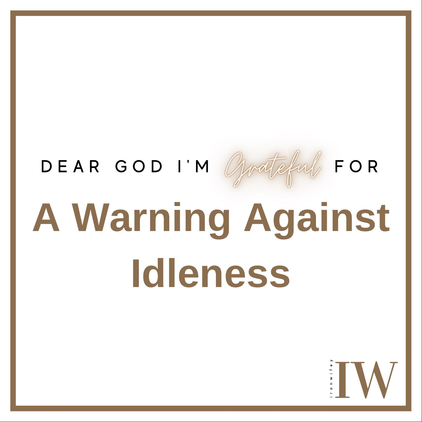 Dear God I’m Grateful For A Warning Against Idleness