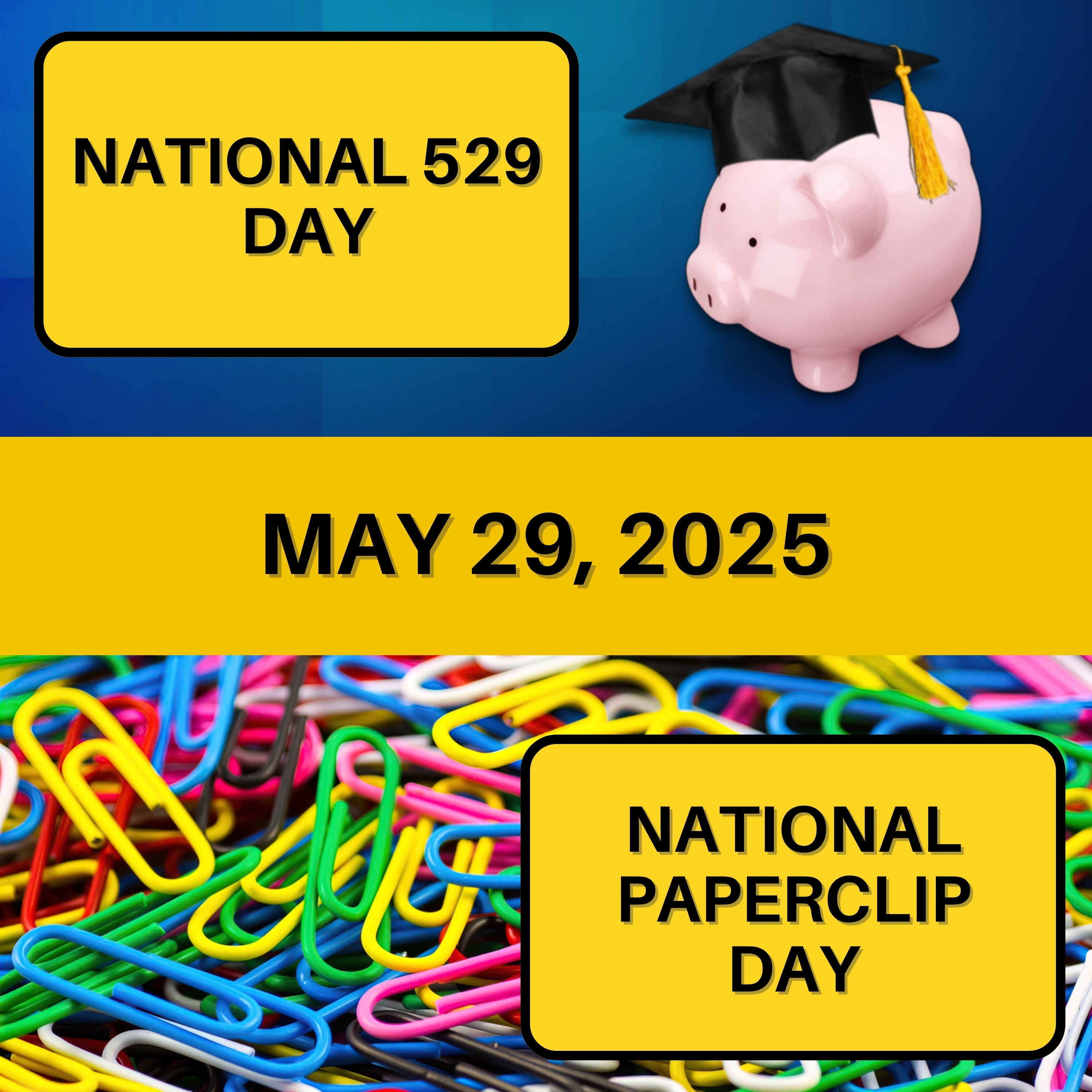 Explore a day of educational savings and everyday ingenuity in this episode of Destination Celebration, aired on May 29, 2025. Hosts Marlo Anderson and Latoya Johnson highlight National 529 Day, promoting the benefits of 529 plans as a smart way to save for future educational expenses, helping families invest in their children's education. Then, they turn to National Paperclip Day, celebrating the simple yet ingenious paperclip, a small tool that has become essential for organizing documents and solving everyday problems with its versatile design. Whether you're planning for educational expenses or appreciating the functionality of paperclips, this episode offers a blend of forward-thinking and practical creativity. Join us on Destination Celebration for a day of financial planning and paperclip appreciation!