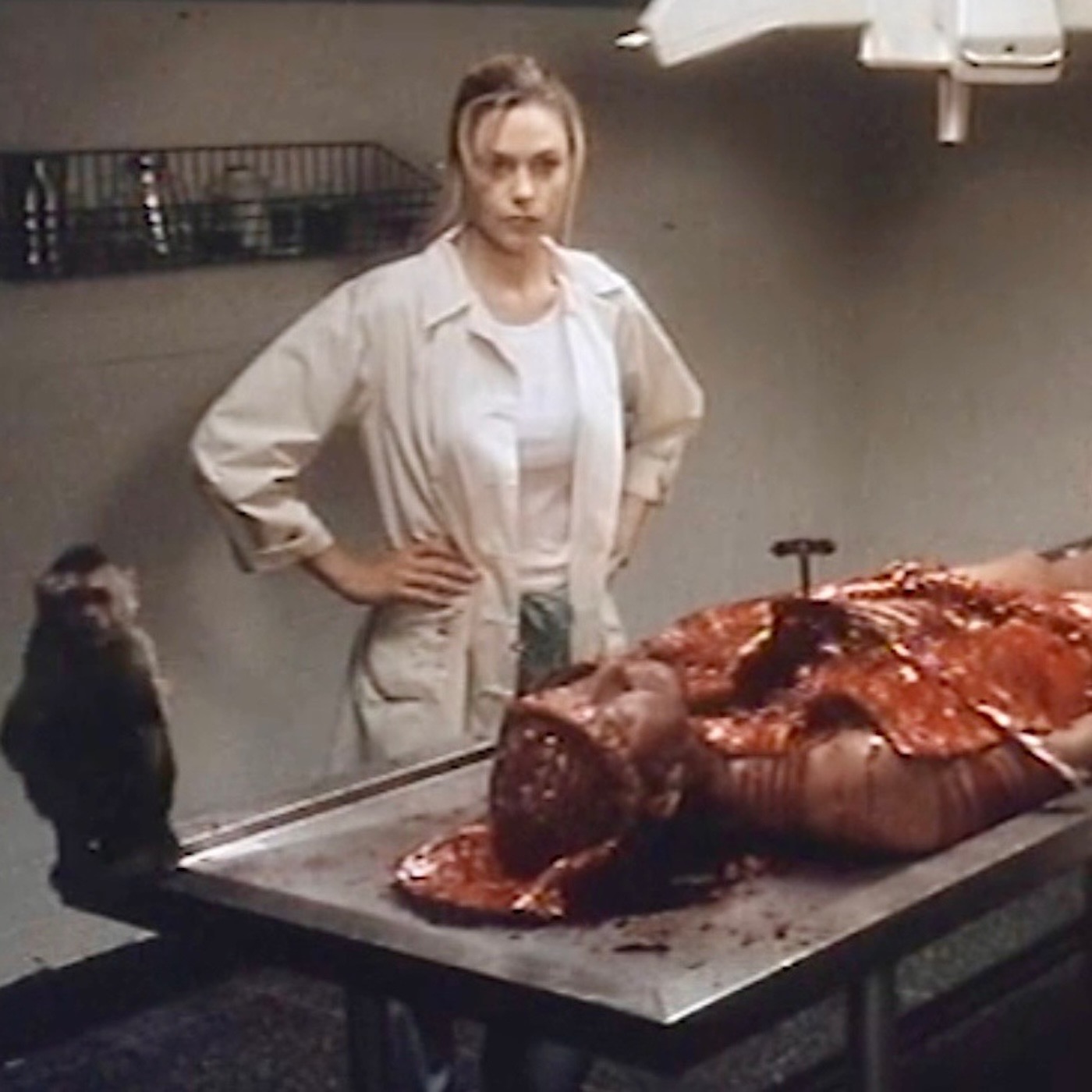 Some people claiming to be scientists (they could be) are experimenting with dreams and deep sleep. They do this in an underground facility (as you do), and they open a parallel dimension (also, as you do). Because a test subject dies (explodes all over the place), Captain Hickock (David Beecroft) is called in to investigate the work of Dr. Erhardt (Louise Fletcher) and Dr. Van Fleet (James Hong). Now, there is an alien from another world running amok. Really, a bunch of stupid stuff is going on. Miguel A. Núñez Jr. is here but not as Dee Jay from Street Fighter. A nude woman is on display! There is a monkey named Bingo! RTS thinks Hickock is Tommy, but they are different people, but it doesn’t really matter. One is “Ginger Beard” with a shotgun! Where is Mike in all of this? Jeremy appreciates how everyone talks as if they have molasses in their mouths. La-Mar feels one droplet of water fall on him and he goes bonks! Between all the slow, nonsensical tech talk, the goo pipes and non-verbal transitions, the length of the movie is felt. How the hell are we getting out of this GD Shadowzone?