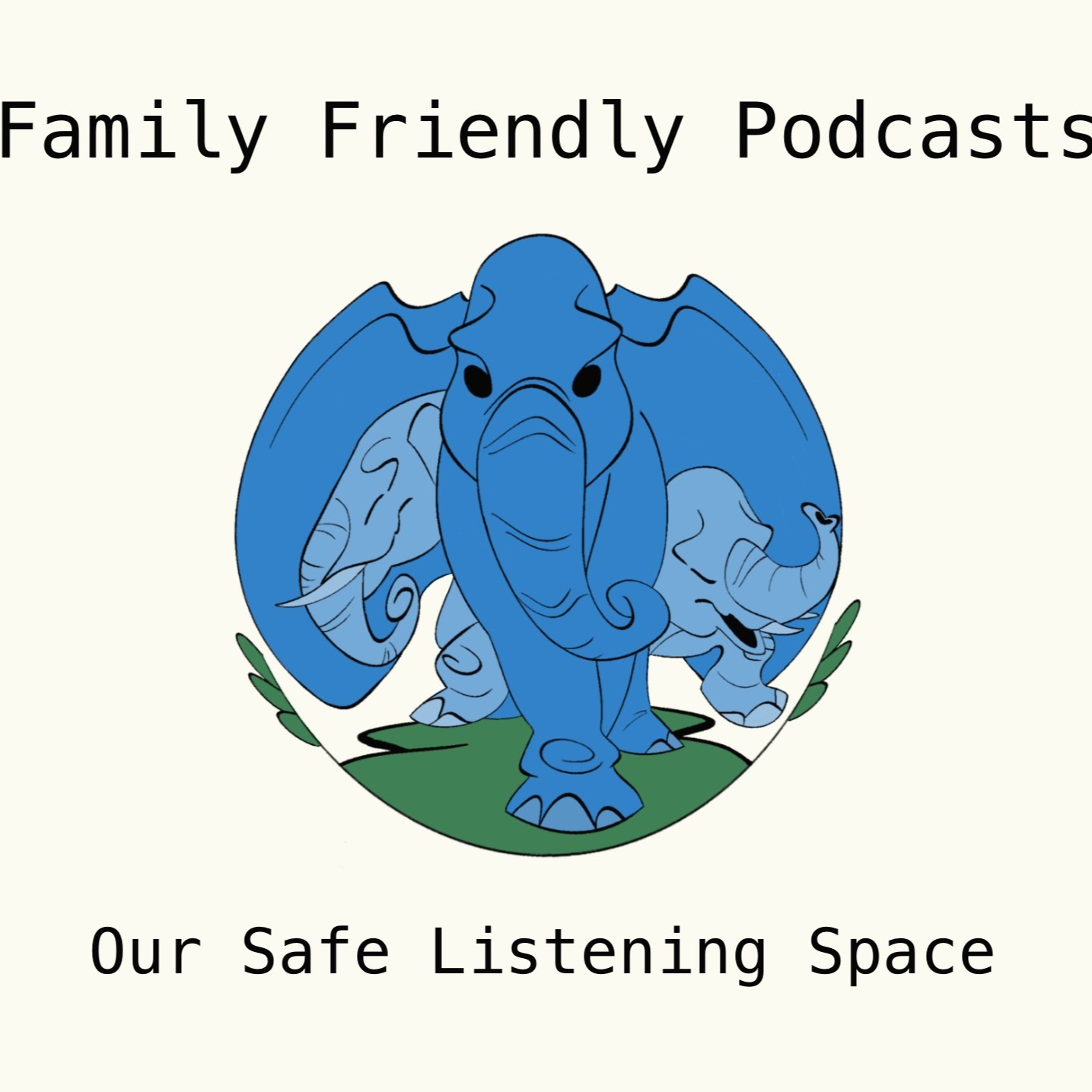 You can't see it well on the cover art, but we've got a brand new logo that includes three elephants, our company name, and our tagline: Our Safe Listening Space