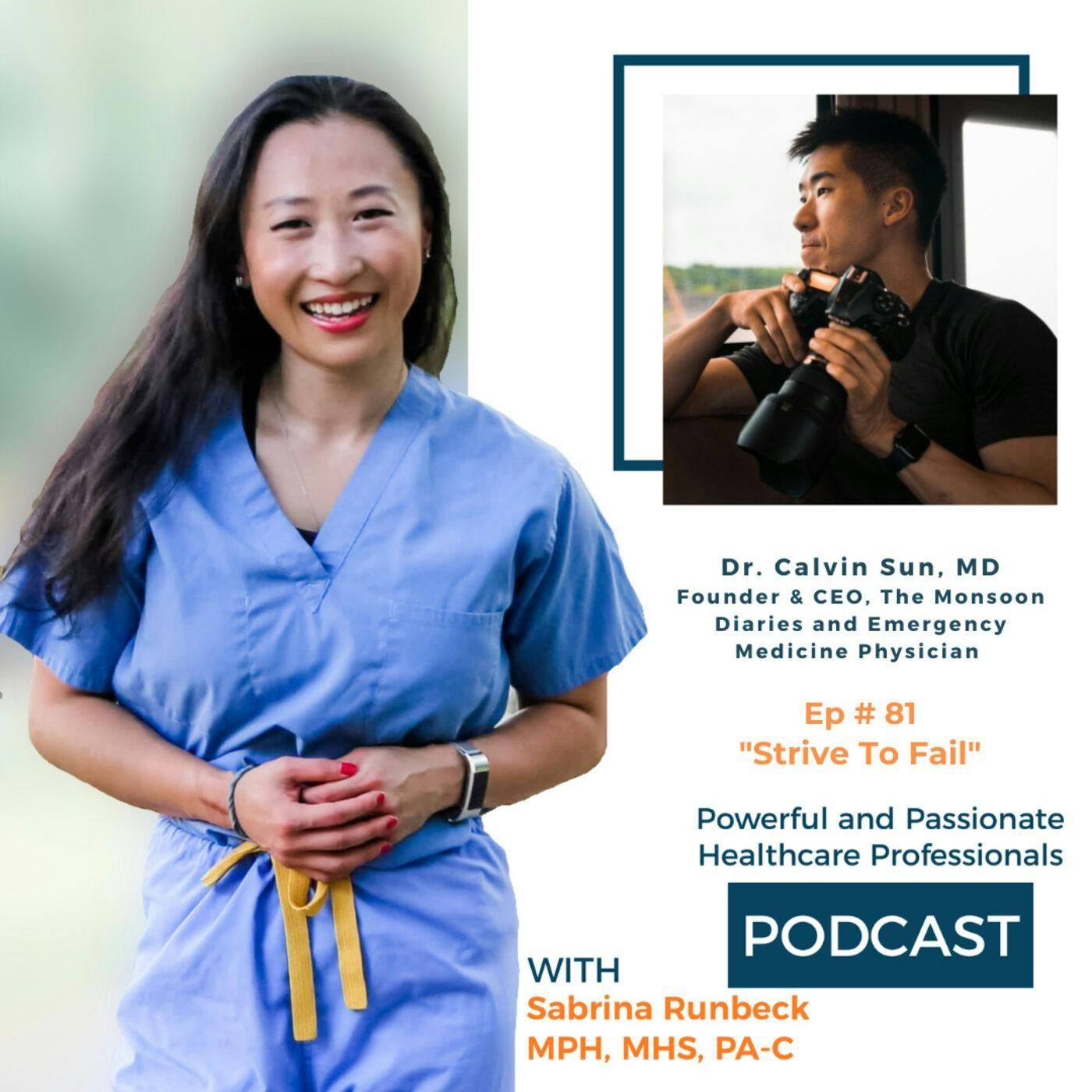 What's one motion that pops up when you hear the word “Failure”?Negative thoughts can be swirling around your head because nobody enjoys failing.The two major drivers that change human behaviors are fear and love. Fear, although we do not want to admit it, can hold us back from taking action.Lack of action causes us to lose valuable opportunities in our careers, relationships, and personal missions.It stops you from doing the things that you want to do the most!Because some of the lies that our brain creates are "You are not good enough", "Who do you think you are" & "You will fail".But the truth is... Failing isn’t evil!This is why I invited Dr. Calvin Sun to speak with you on today's episode. Dr. Sun is the Founder and CEO of The Moonsoon Diaries and Emergency Medicine Physician.He shares insight with you on how he traveled around the world as a medical student, a resident, and an attending. He did not let environmental restrictions confine him.Let your imperfects become your unique perfection.As a healthcare leader, who has to lead by example, you cannot let imperfections or other people's opinions be your roadblock! Subscribe 🔔 and listen 🔊to this episode now❗