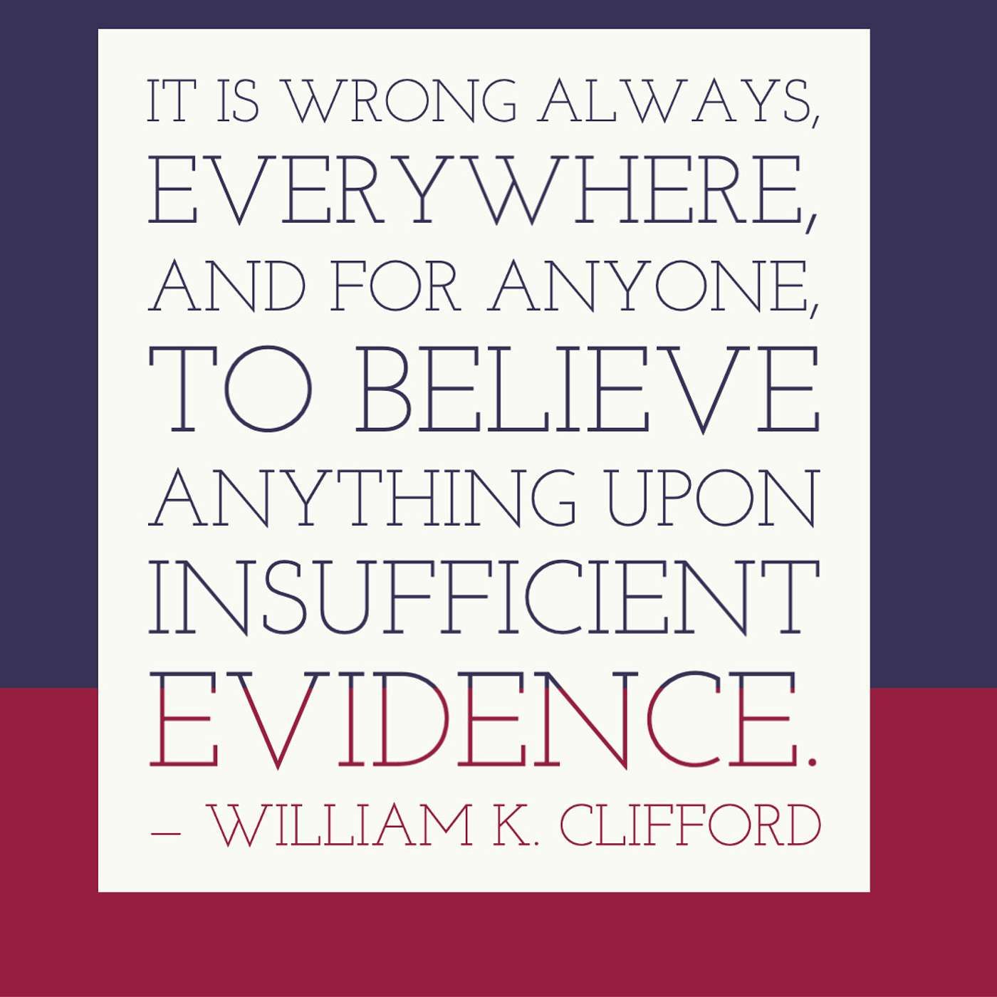 It is wrong always, everywhere, and for anyone, to believe anything upon insufficient evidence.— William K. Clifford, Ethics of BeliefWe all like to think that we are wise, that our opinions are well thought out, and that we’re smart enough to spot when we have inconsistent beliefs. Today I want to talk about why believing something without sufficient evidence is wrong, and that idea that how we come to a belief or a conclusion is more important that the whether the belief or conclusion is correct.