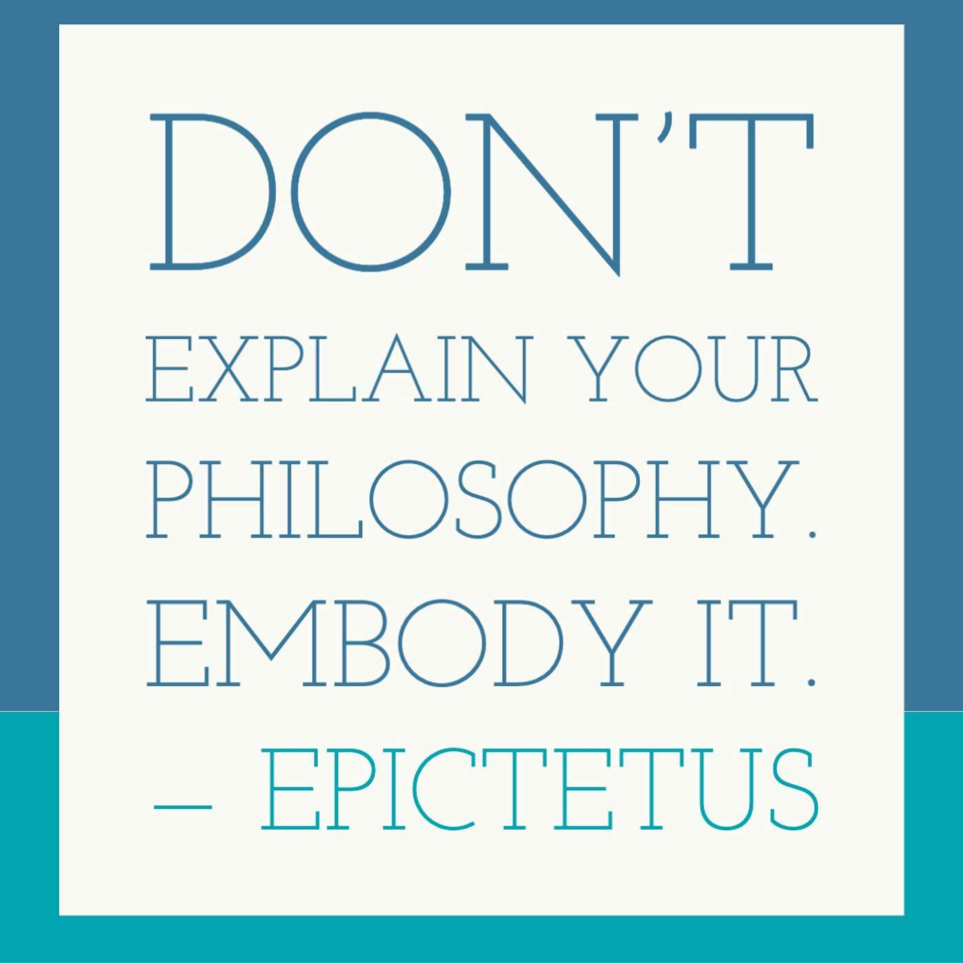 Don’t explain your philosophy. Embody it. — EpictetusEvents in life mean nothing if you do not reflect on them in a deep way, and ideas from books are pointless if they have no application to life as you live it. — Robert GreeneThe hardest thing about any philosophy is being able to apply what you learn in real life. We can read all the books, watch all the videos, follow all the gurus, but until we actually apply what we've learned, all of that learning is worthless.