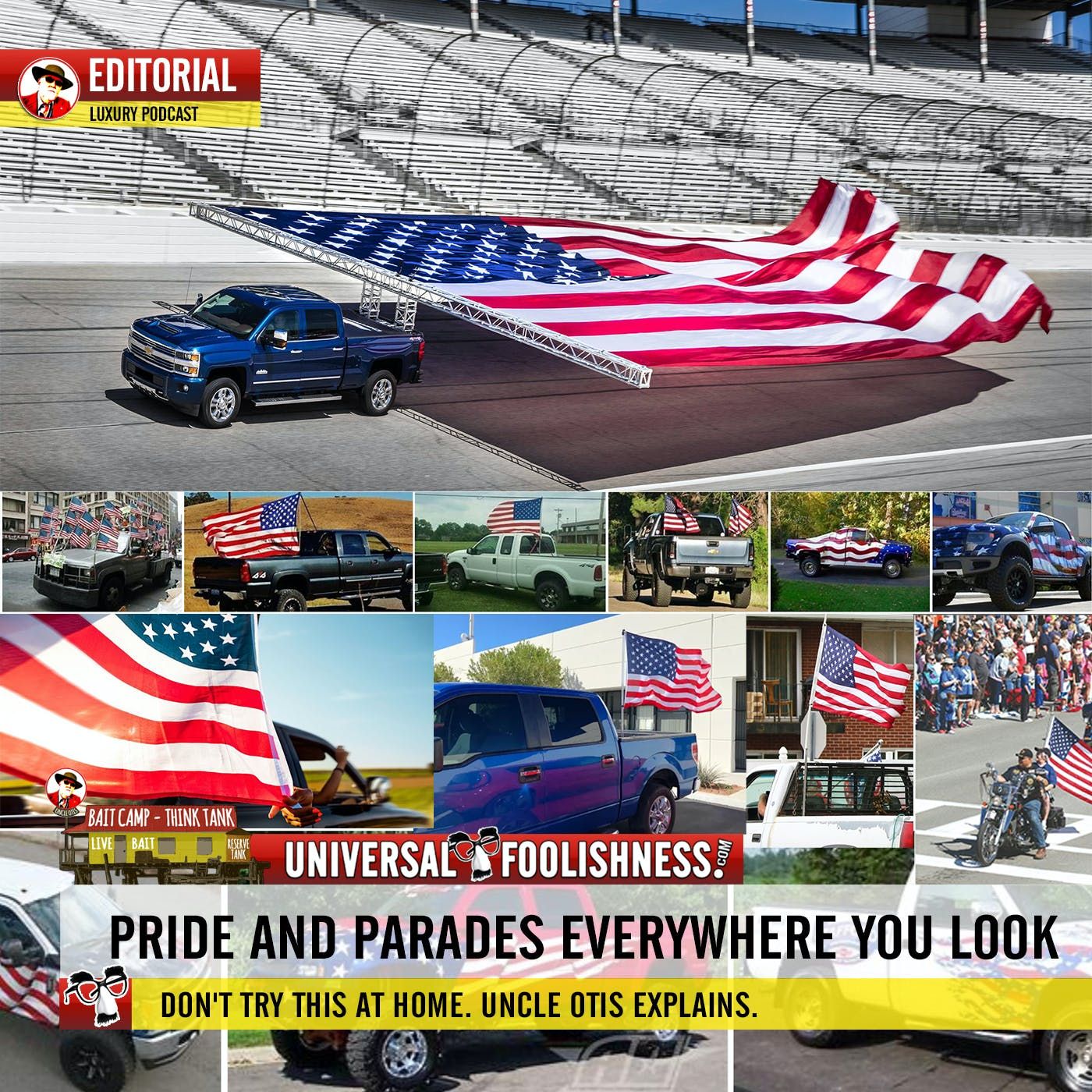 Trucks and flags for Independence Day - what could go wrong? Wade into the guilt-free waters of Think Tank island with Uncle Otis.