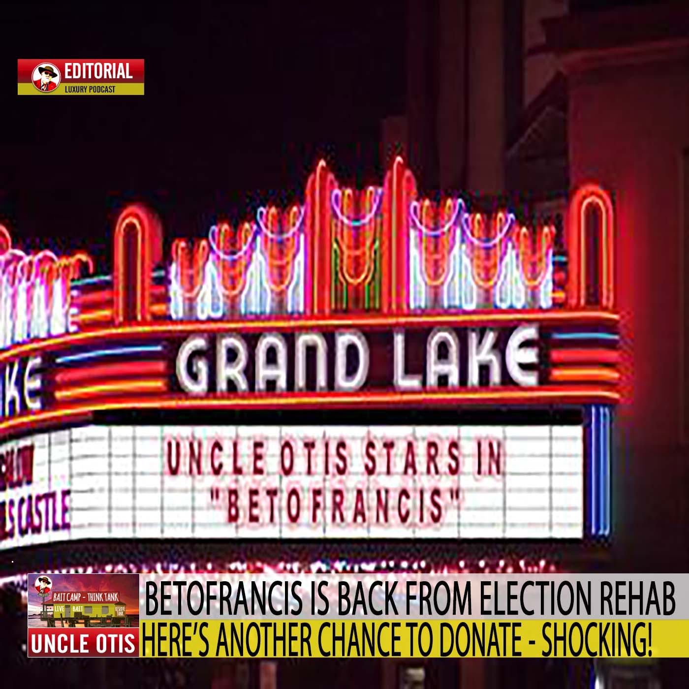 BetoFrancis is back from Election Rehab and on the prowl for more contributions. The most common side effect is nausea. Shocking! The Otis Advisory has the back story. Watch episode ~ Wash hands.