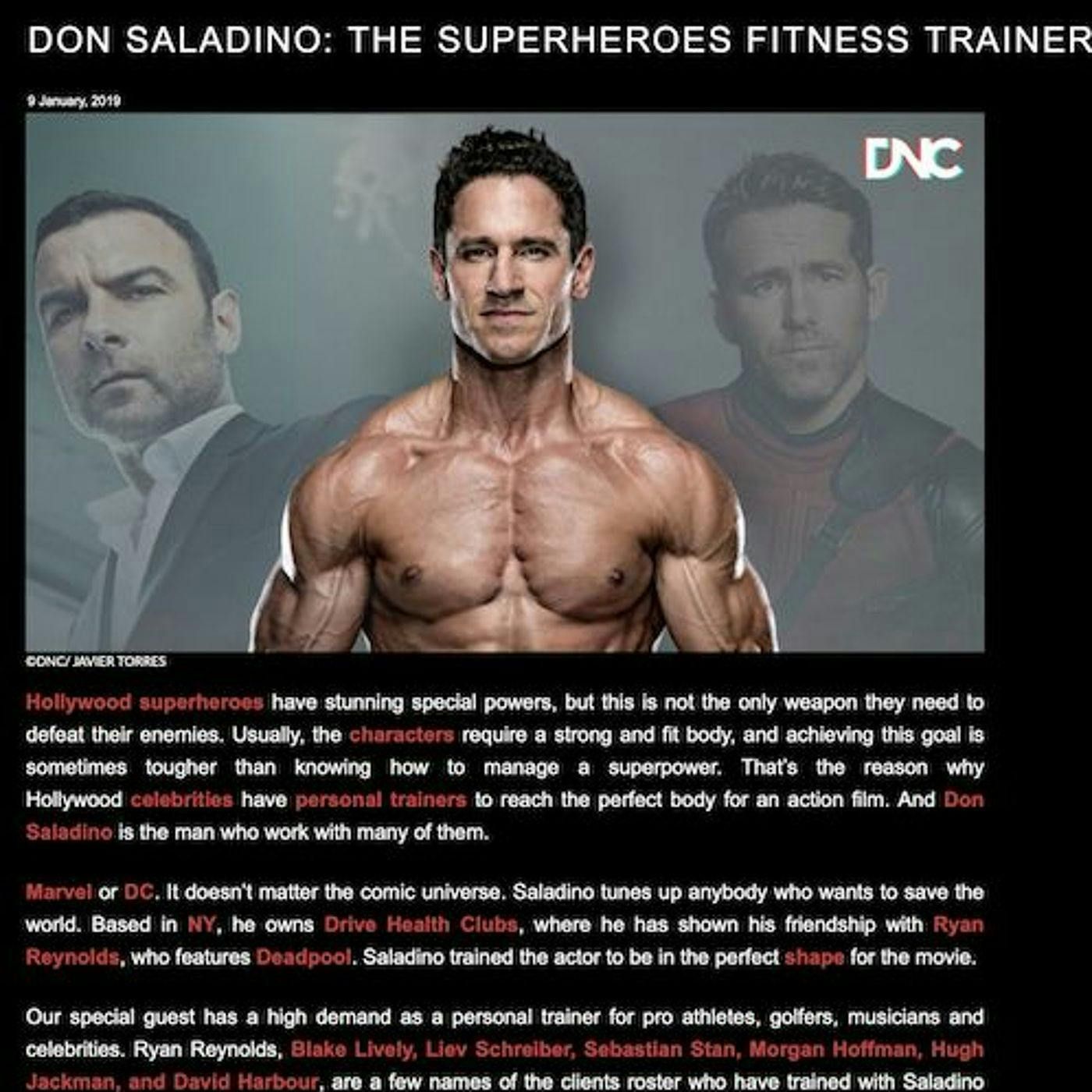 For over 20 years, Don has coached actors, athletes, musicians, and business executives . In 2005, he opened his NYC Gym, Drive 495. After operating a gym for 15 years, Don expanded to a global online fitness business. He has developed a reputation for training some of the biggest names in Hollywood for the big screen. Ryan Reynolds, Blake Lively, Jake Gyllenhaal, John Krasinski, Emily Blunt, Liev Schreiber, Sebastian Stan, Anne Hathaway, Zachary Levi, Hugh Jackman, & David Harbour are among his roster of clients. He has been tapped as a fitness expert in publications such as Muscle & Fitness, Men’s Health, Men’s Fitness, and Met Rx. He has also been featured in People, US Weekly, Origins, In Touch, Cosmo, & Shape; and has made appearances doing live fitness demos on The Today Show, Page Six TV, People NOW, E News, The Better Show, & The Juice. He sits on the advisory board of Men’s Health Magazine. In March 2018 & October 2021, it was his great honor to shoot the Cover of the iconic Muscle & Fitness Magazine. Don lives in New York with his wife, Mel, and their two children, Amelia and Donny Jr. - & their pups Rigatoni & Sambuca.