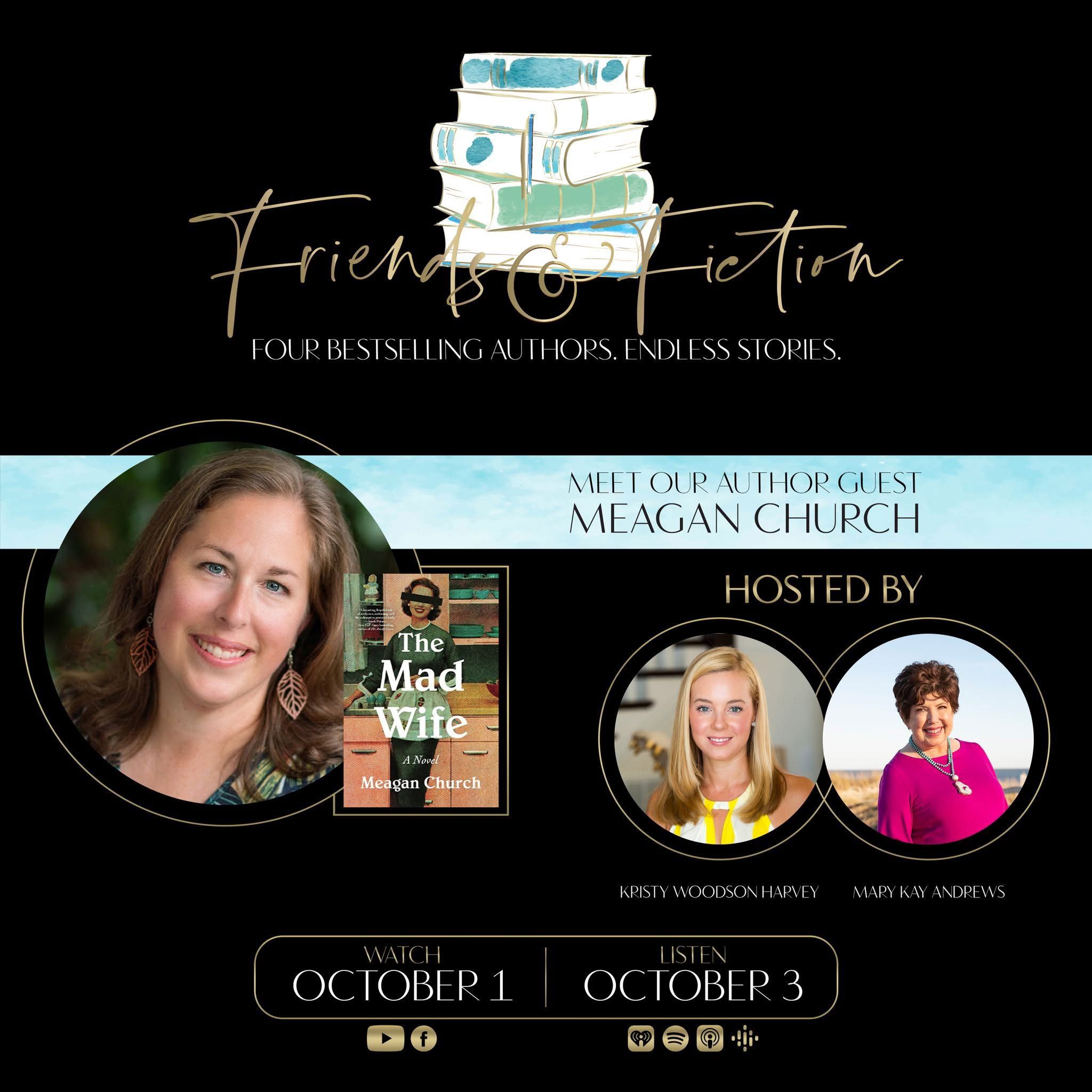 On this episode, Kristy Woodson Harvey & Mary Kay Andrews welcome bestselling author Meagan Church to discuss The Mad Wife, an exploration of identity, motherhood, and the suffocating grip of societal expectations which will leave you questioning the lives we build—and the lies we live. Meagan built a career as a storyteller and freelance writer for brands, blogs, and organizations. Her fiction (The Girls We Sent Away, The Last Carolina Girl) consists of emotionally-charged, thought-provoking, empathy-inducing stories that focus on overlooked and oppressed women's voices from the past. A Midwesterner by birth, she joins us from her current home in North Carolina that she shares with her high school sweetheart, three children and a plethora of pets. We’re eager to discuss her new novel, The Mad Wife (Sourcebooks, Sept 30), which has been praised by Sarah Penner as "a gripping portrait of 1950s suburbia with a sinister undercurrent…a haunting, hopeful tale of resilience, reckoning, and the redemptive power of truth," and by Ashley Winstead as a “one-sitting read [that] offers unforgettable characters, a beautiful window into life in the Fifties, and a stirring tribute to the strength of women."