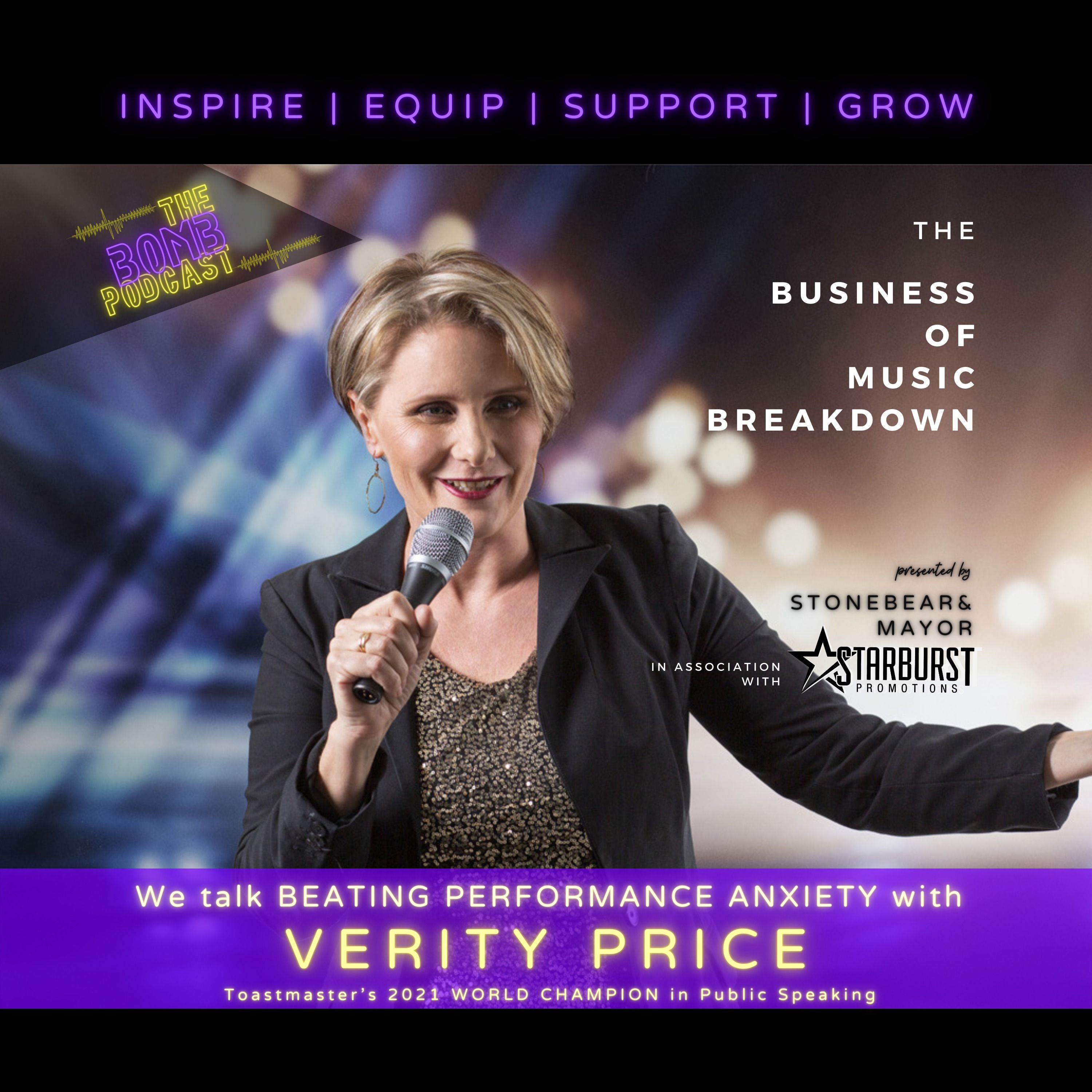 Verity Price, Toastmaster's 2021 WORLD CHAMPION in Public Speaking, takes us on an inspirational journey of how she discovered her calling and pioneered a new music business model. She helps us to understand depression is manageable and shares how people in the limelight can successfully deal with performance anxiety. In this final episode of season one on The BOMB Podcast, you'll feel empowered, refreshed, and ready to take on 2022 - whatever it may hold.