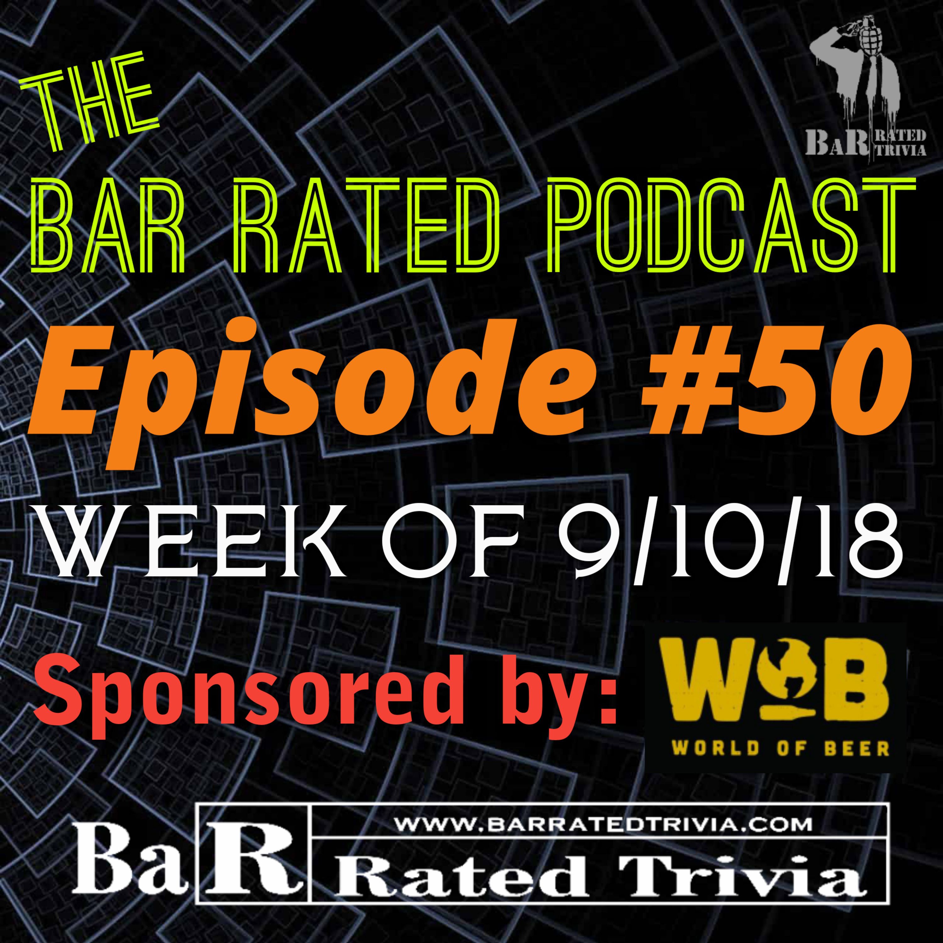 That's right, ladies and gents, this podcast is coming to you LIVE from World of Beer! Okay, well, technically, it was recorded live at World of Beer, but you get the point. Come along for the ride as Goldberg, Sarah and Nick celebrate episode #50 with a football themed trivia game, a brand new BRE Sports Report and your Top 10 STAR WARS Team Names! There's a #5pointphrase embedded in here somewhere, so listen for that as well as music from our QuizMania house band, Kenny Mehler Band!