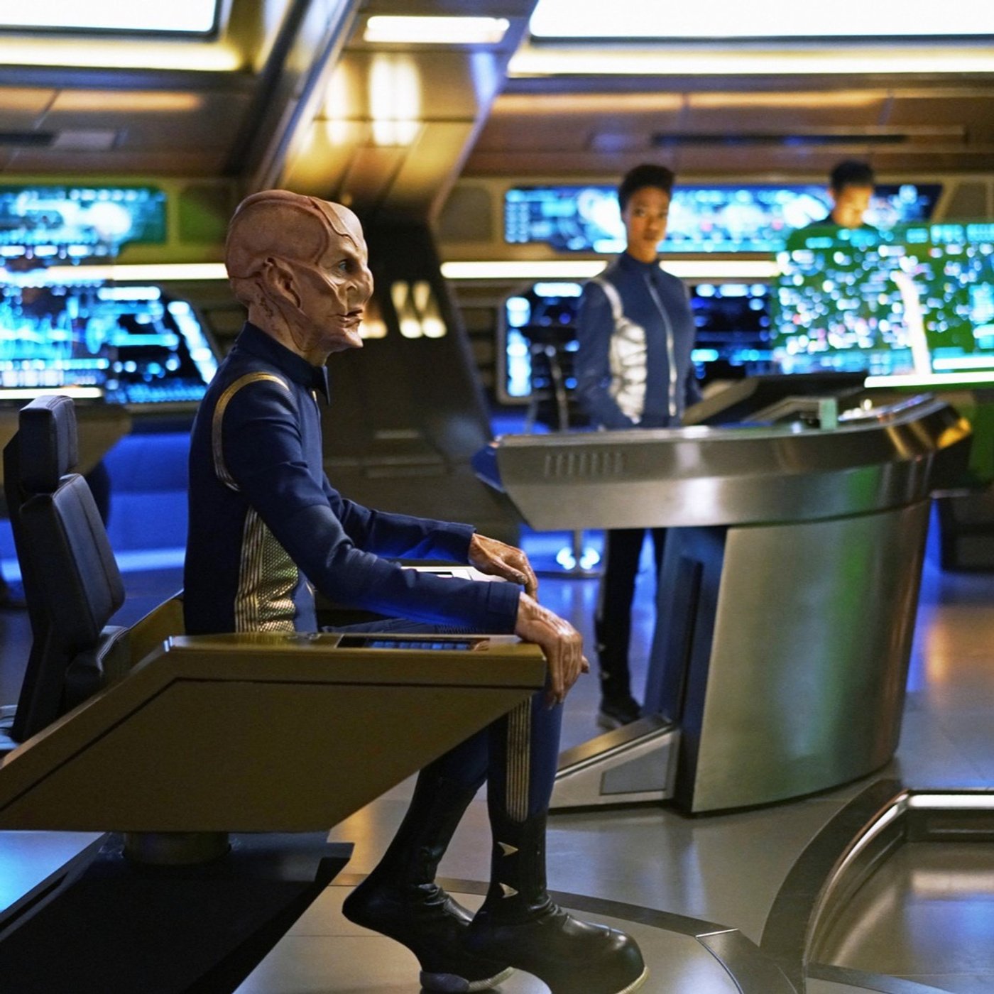 The USS Discovery finds itself back in the prime universe nine months from the time they unexpectedly ended up in the Mirror universe. They are forcibly boarded by Federation officers and officials, including Admiral Katrina Cornwell and Ambassador Sarek. The Discovery crew learn the Klingons are winning the war having destroyed over 1/3 of the Federation fleet and taken over 20% of Federation territory. The Discovery’s Mirror counterparts, the ISS Discovery was destroyed by The Klingons soon after it appeared in the prime universe. The Klingons are not united. Instead, Klingon houses are wantonly destroying Federation efforts to demonstrate dominance among the other Klingon dynasties. L’Rell advises Cornwell, now that the Klingons have tasted their blood, they will not stop the destruction until the Federation and its people are annihilated.