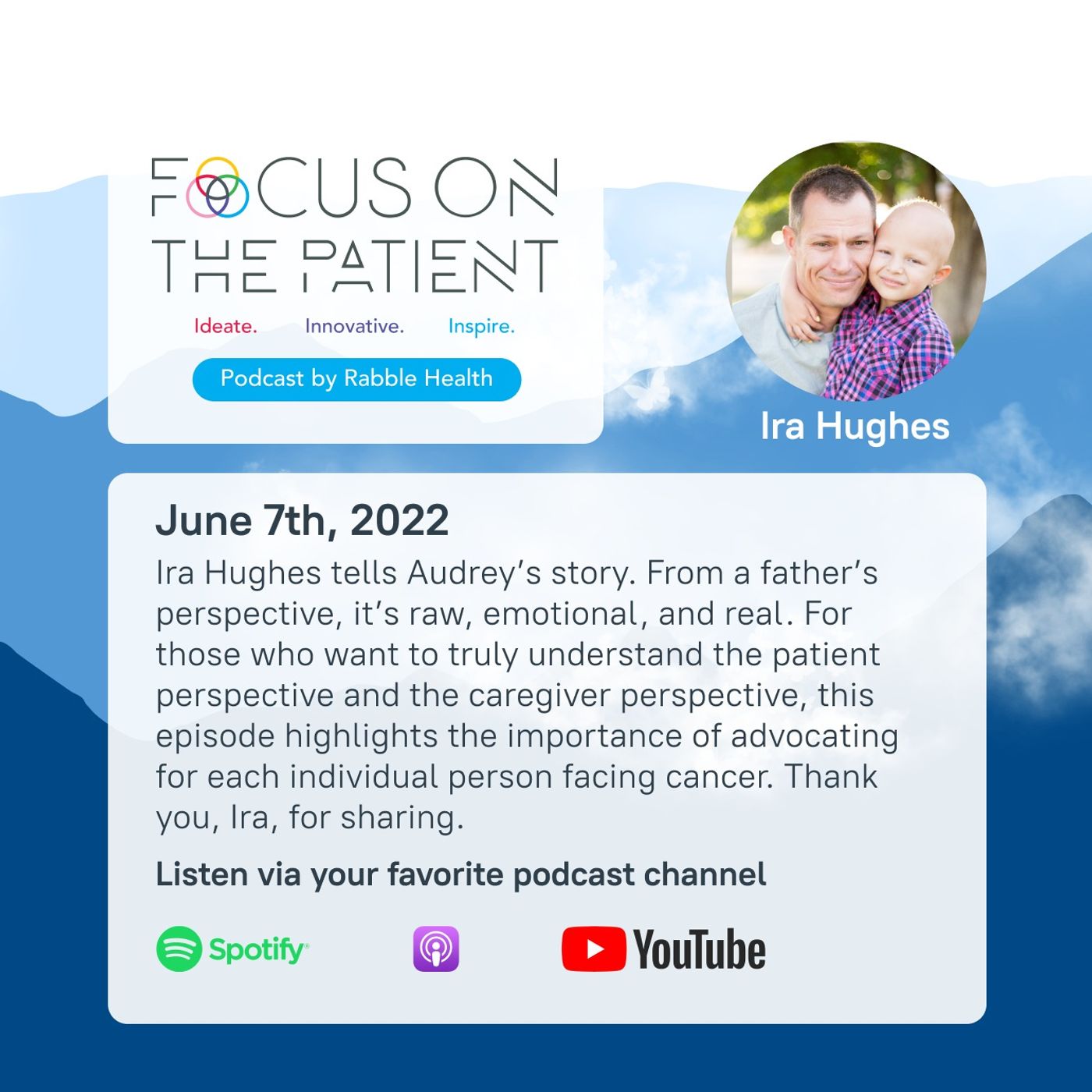 Ira Hughes tells Audrey’s Story. From a father’s perspective, it’s raw, emotional, and real. For those who want to truly understand the patient perspective and the caregiver perspective, this episode highlights the importance of advocating for each individual person facing cancer. Thank you Ira, for sharing.