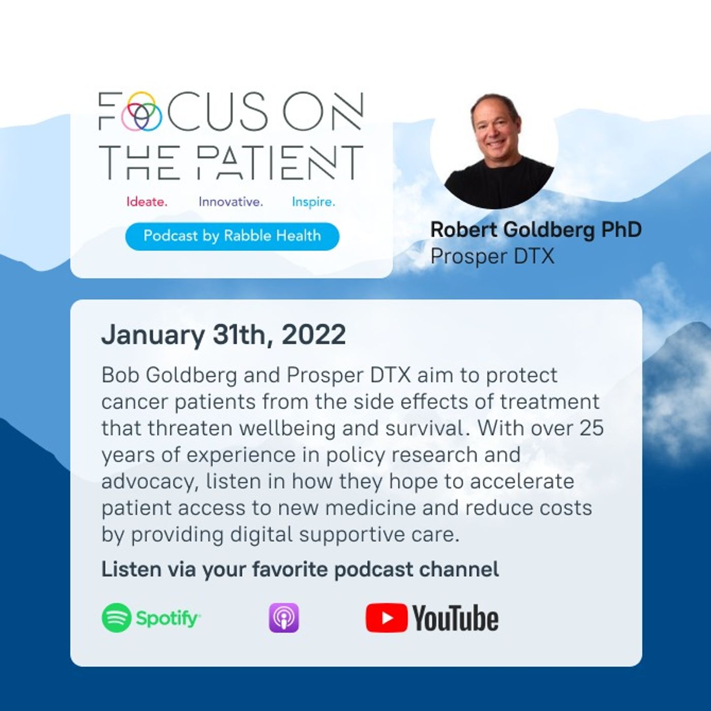 Bob Goldberg and Prosper DTX aim to protect cancer patients from the side effects of treatment that threaten wellbeing and survival. With over 25 years of experience in policy research and advocacy, listen in how they hope to accelerate patient access to new medicine and reduce costs by providing digital supportive care.