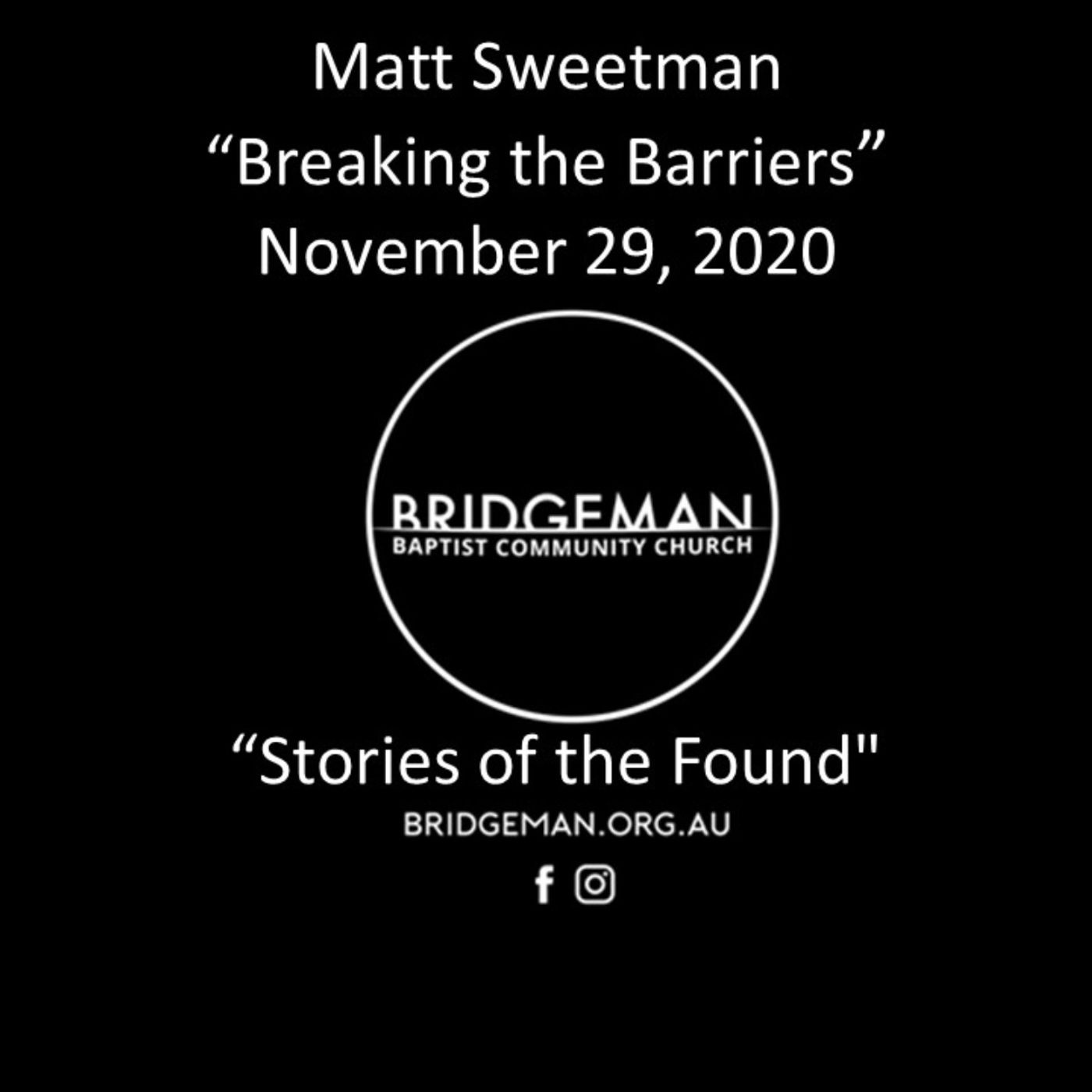 Pastor Matt Sweetman continues our "Stories of the Found" series with "Breaking the Barriers"