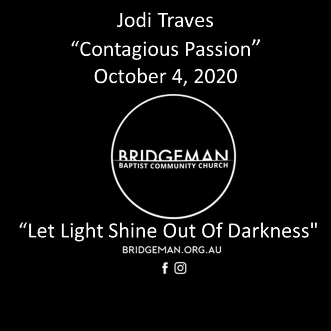 Pastor Jodi Travels continues of "Let Light Shine Out of Darkness" with a message of "Contagious Passion"