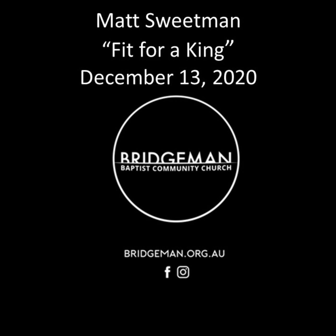 Pastor Matt Sweetman shares the message "Fit for a King"
