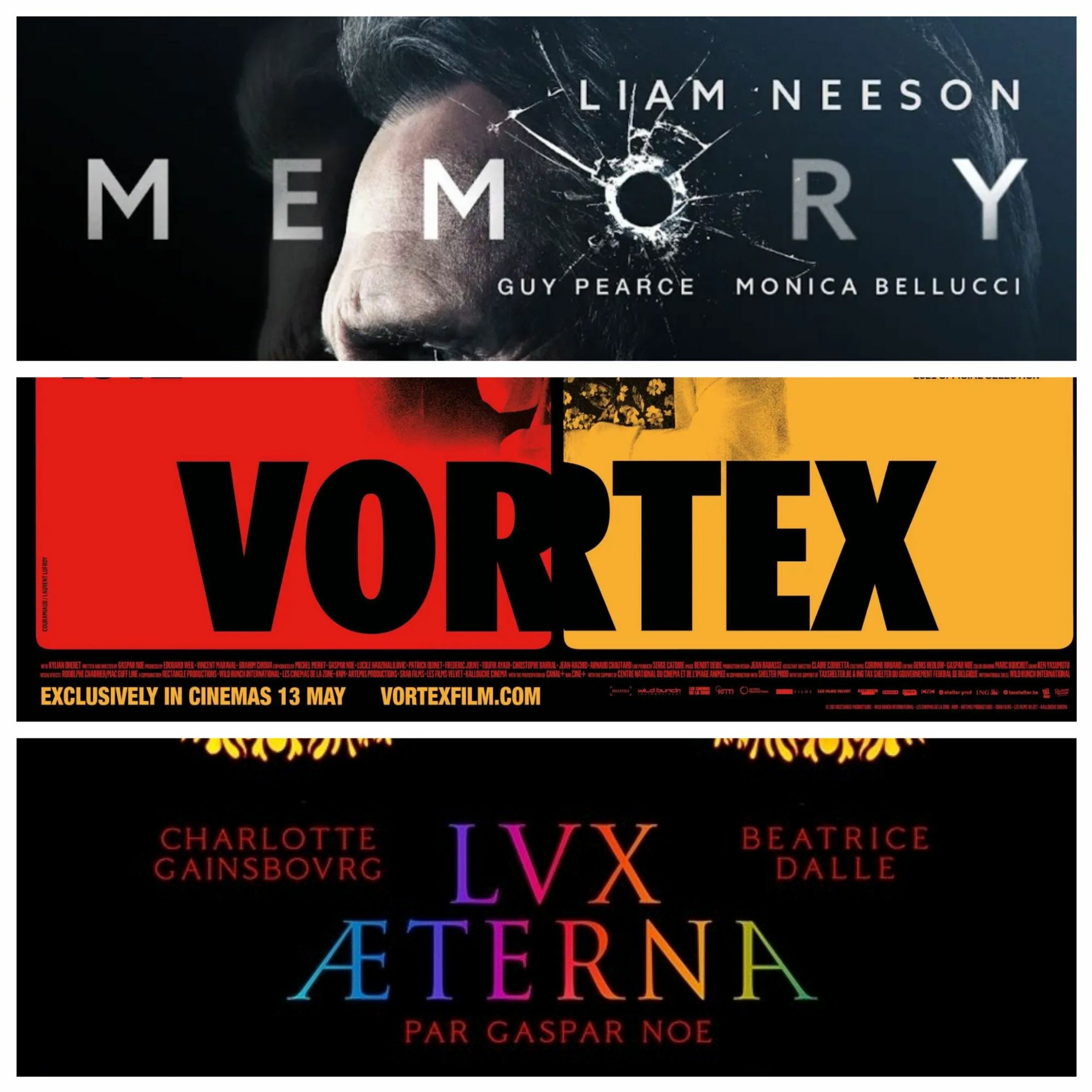 On this week's episode, Jesse vacations at an undisclosed location and Bilge Ebiri returns to fill the void! Enter the void! Get it?! We're talking TWO new Gaspar Noe films, Vortex and Lux Æterna, and the latest Liam Neeson actioner with a twist, MEMORY