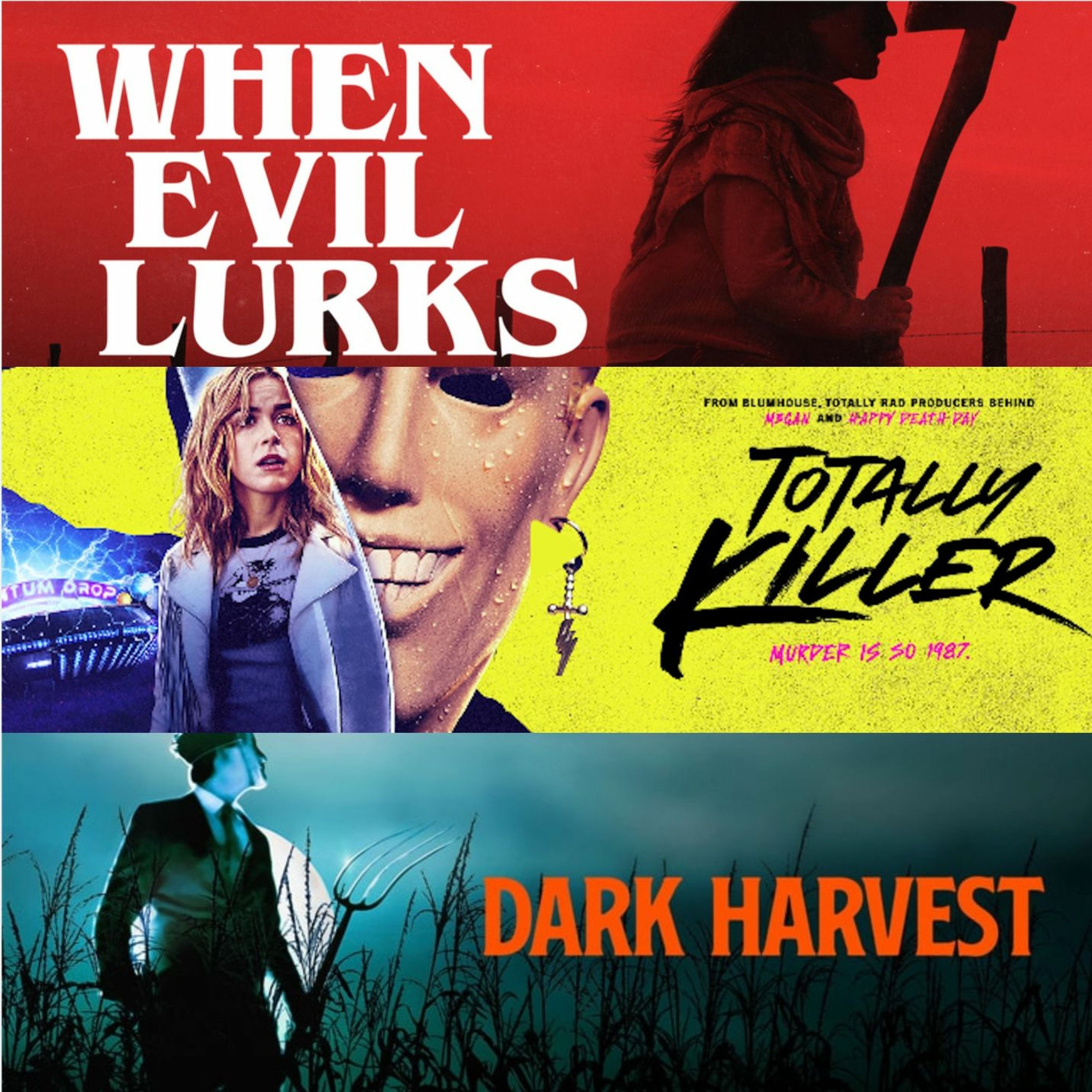 Today's episode is a triple feature of WHEN EVIL LURKS (in theaters now, on Shudder 10/27), TOTALLY KILLER (now on Amazon Prime) and DARK HARVEST (now available to rent on VOD).