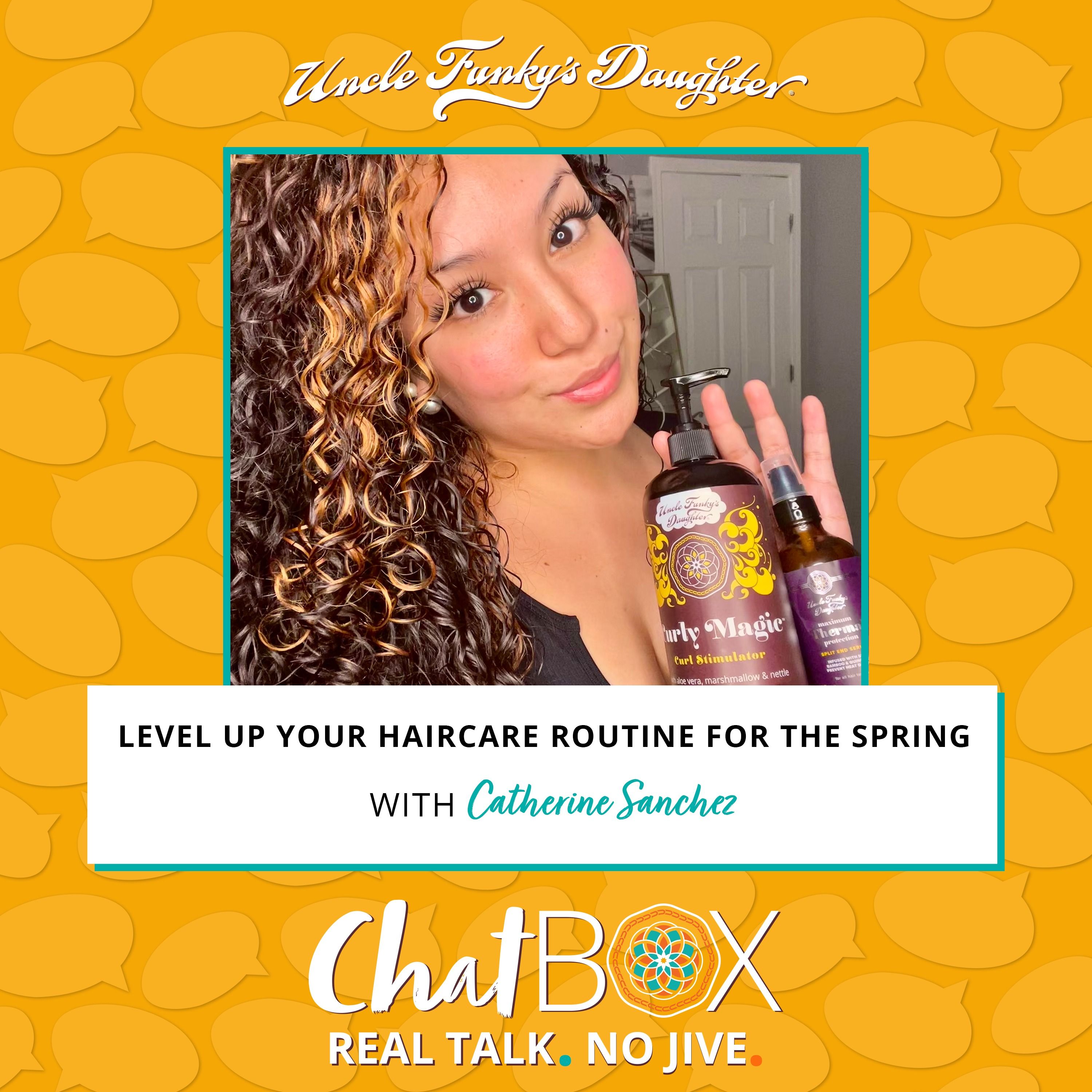 Hey Funky Junky! Uncle Funky’s Daughter has a blog and podcast called ChatBox. The goal of ChatBox is to help you embrace your natural beauty! The conversation is about more than hair! The podcast highlights that we come in many different shapes and sizes, and our hair comes in various textures and curl patterns. Listen in on candid conversations as our curly guests talk about hair how-tos and real lifestyle tips. Real talk, no jive.