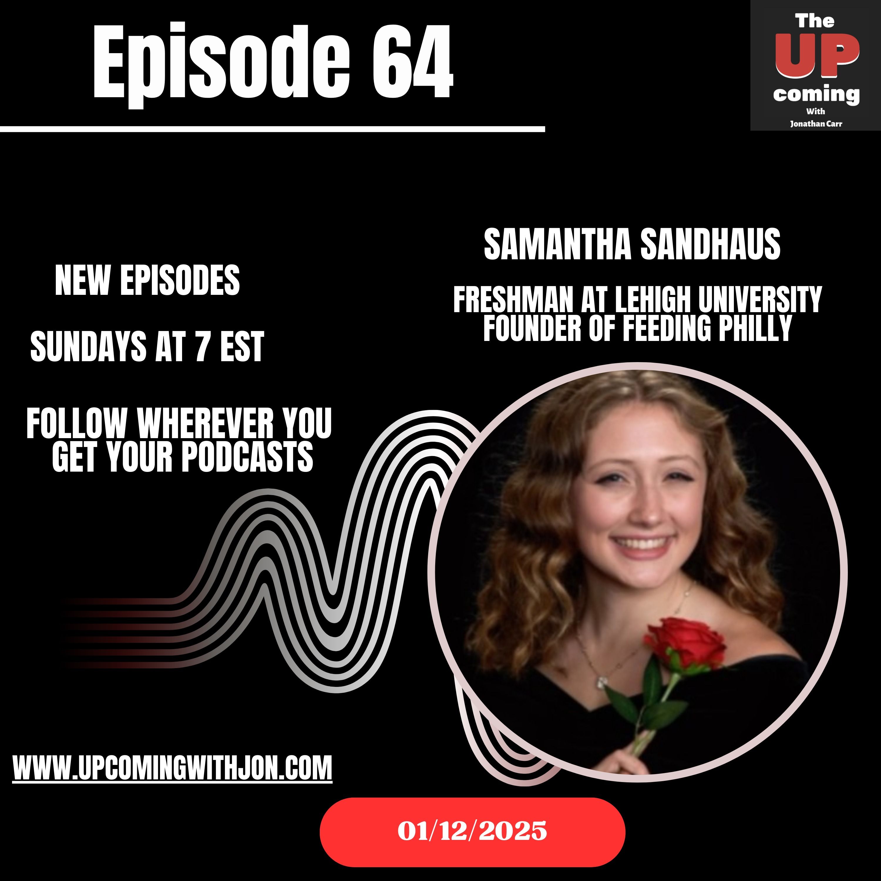 It's been a long time but the UPcoming is back with the first episode of 2025. Joining me for the long-awaited episode 64 is Samantha Sanhaus from Philadelphia. Only a freshman in Lehigh University, and her achievements are already astounding. She's the founder of Feeding Philly, a non-profit dedicated to combating youth malnutrition, inspired by her own experience with an eating disorder. Her leadership extends beyond this, as she's proudly served PA Youth Vote and the Philadelphia Youth Network.