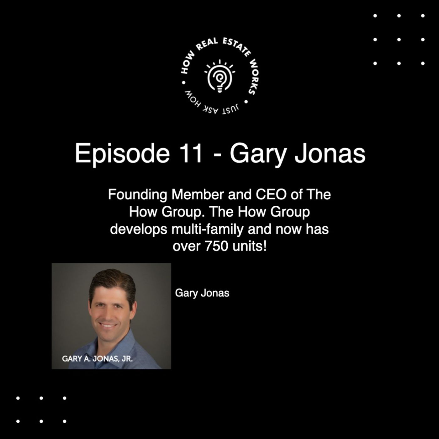 Gary Jonas is a Founding Member and CEO of The How Group. The How Group is a real estate company that started in Philadelphia as a multifamily developer and now has grown to have a Mortgage Company, Property Acquisitions Team, General Contractor, Property Management Team, Property Investments Team, and Real Estate Sales Team. The How Group has 750 units and their real estate team did around 100 million in sales last year.