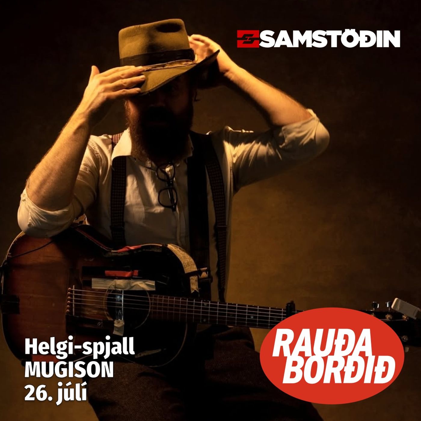 Örn Guðmundsson aka Mugison kemur að Rauða borðinu og segir sköpunarsögu sína, hvernig hann varð til sem manneskja og listamaður. Og hann er með gítarinn með sér og tekur nokkur lög þar sem við á í frásögninni.