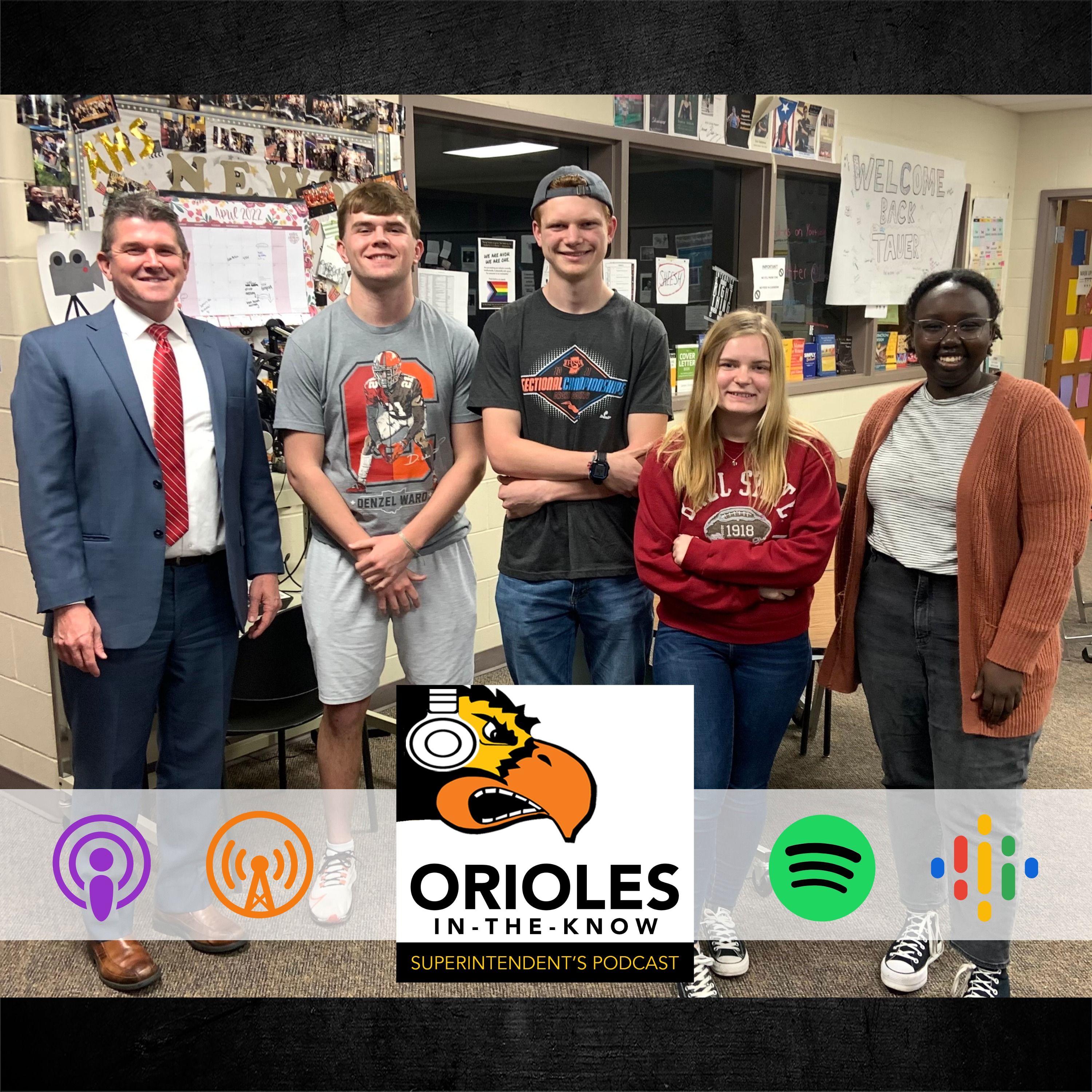 There's no more appropriate way to conclude season 2 of the Orioles In-The-Know podcast than to highlight some of our graduating seniors. Join the conversation as Dr. Wyndham and four members of the AHS Class of '22 discuss their experiences in Avon Schools, the importance of balancing academics and extracurricular activities, their plans for the future, and their advice to students in the class of '23, '24, '25, and beyond. Be sure to listen until the end so you don't miss their shout-outs to current and former teachers, highlighting that they're primed for success beyond the walls of AHS because of the investments educators have made in them during every stage of their experience from kindergarten through high school. We're excited to celebrate with these students -- and all members of the Class of '22 -- as they wrap up their educational journeys in Avon.