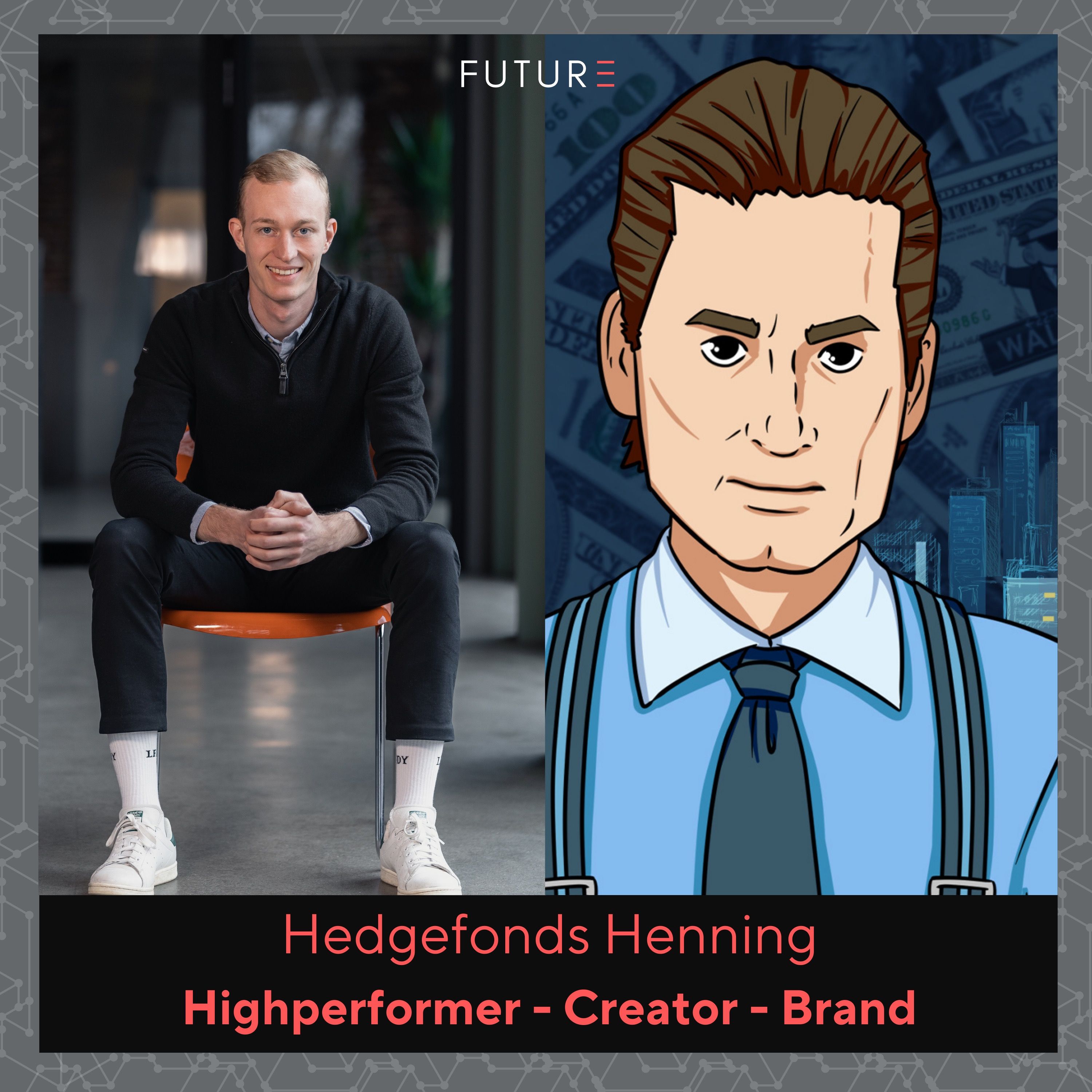 Hedgefonds Henning (auf Youtube: Highperformer Henning) gilt als eine der relevantesten deutschen Memo-Seiten und wohl als größte deutsche Finanzmeme-Seite. Doch nicht mehr nur das. Mit eigenem Merch, Kooperation mit Funk und weiteren Projekten baut Hedgefonds Henning die Seite sukzessive zu einer relevanten Marke aus - getragen von einer starken Community.