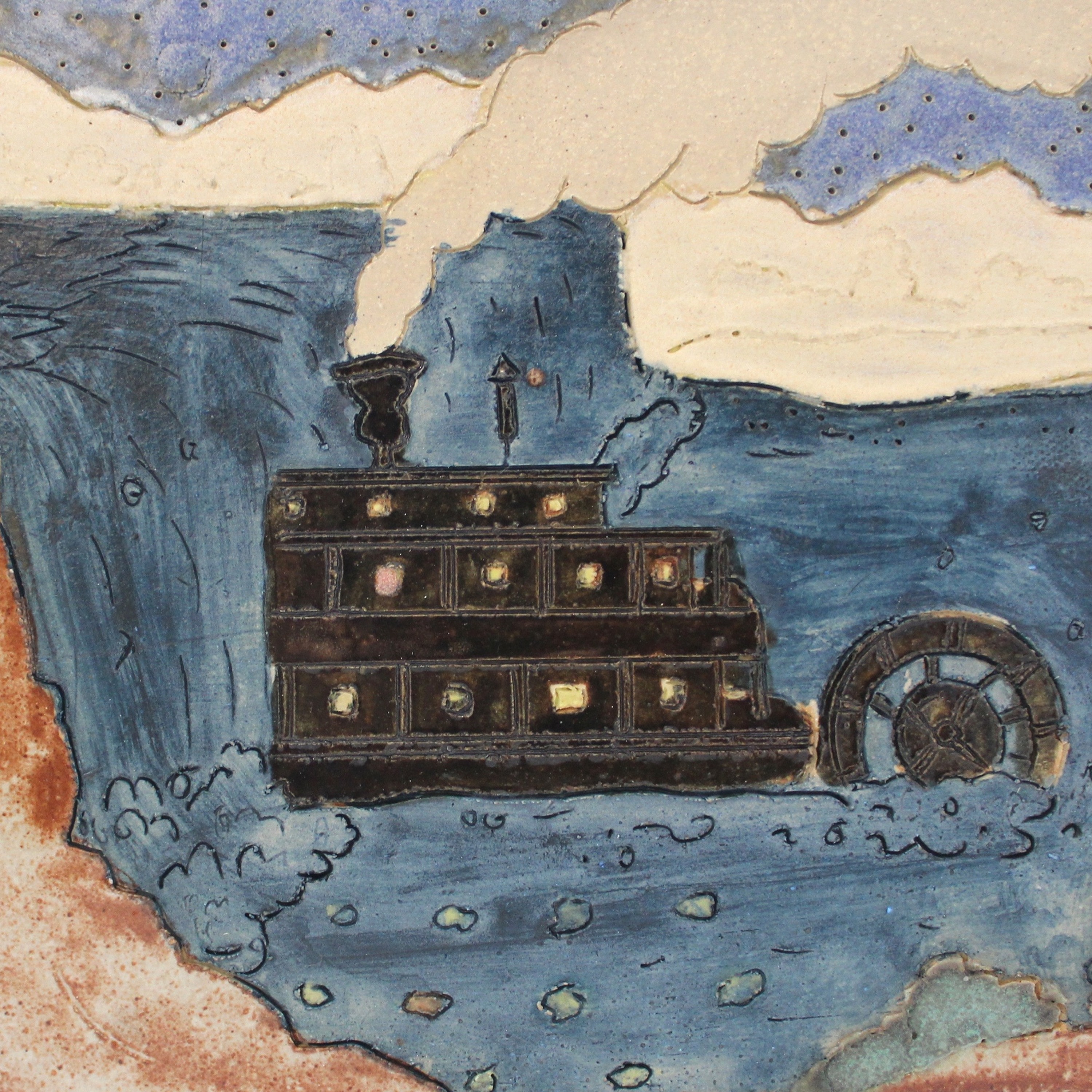 Thanks to Kevin McNamee-Tweed for the artwork: “Steamboat,” 2018, Glazed ceramic, 9.25” x 7”.