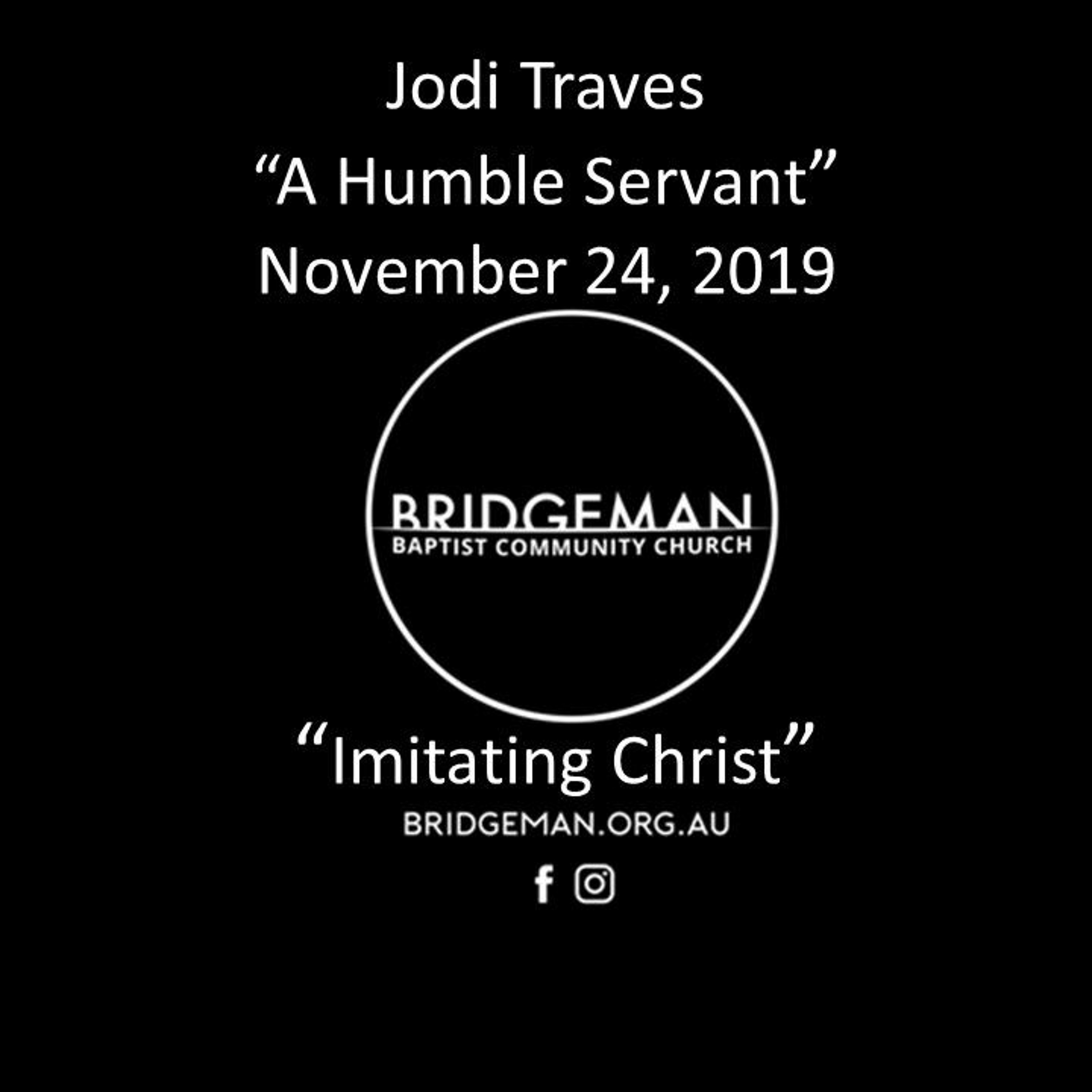 Pastor Jodi Traves continues our ‘Imitating Christ’ series with “A Humble Servant”