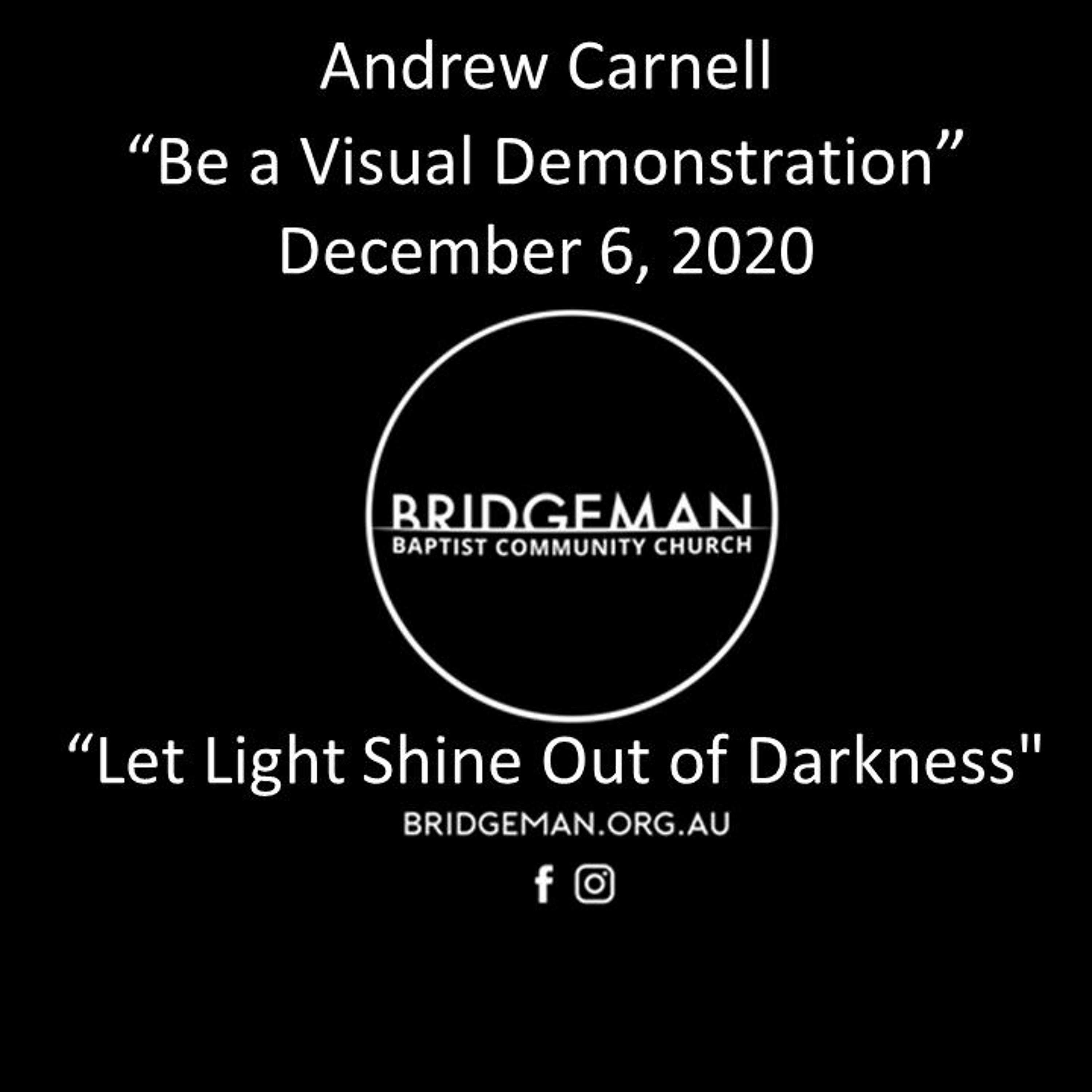 Pastor Andrew Carnell concludes our “Let Light Shine Out of Darkness” series with “Be A Visual Demonstration”