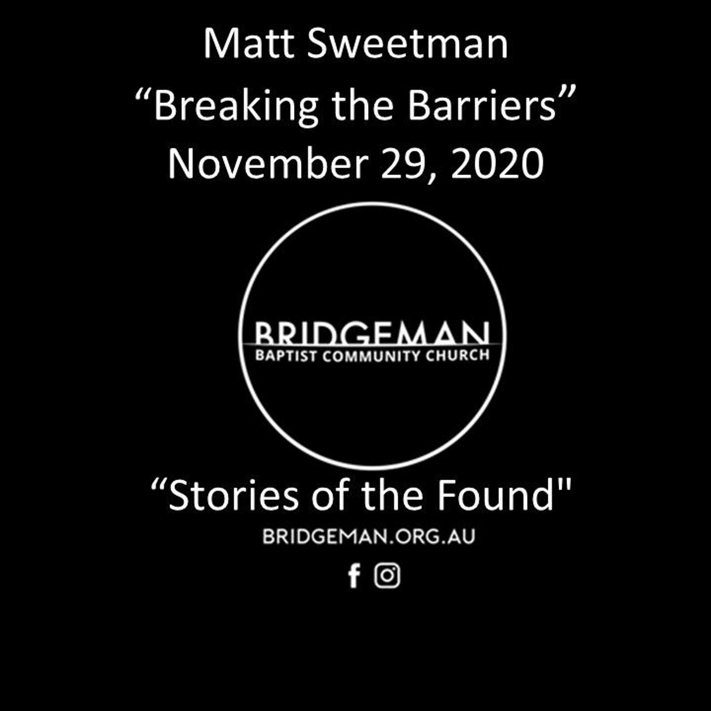 Pastor Matt Sweetman continues our "Stories of the Found" series with "Breaking the Barriers"