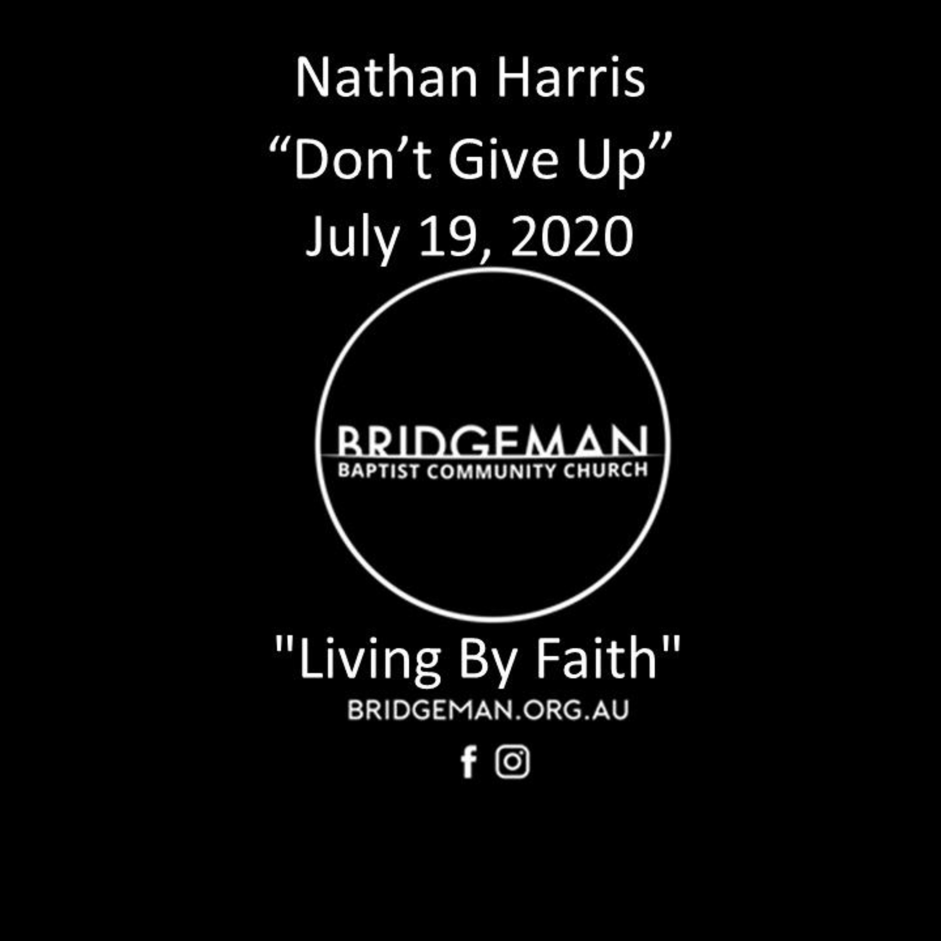 Pastor Nathan Harris shares the first message in our 2 part "Living By Faith" series "Don't Give Up"